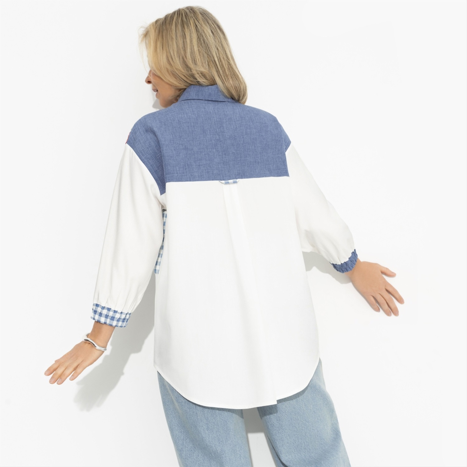 Рубашка комбинированная «Жемчужина образа (white)» — это воплощение элегантности и комфорта, идеально подходящее для женщин, стремящихся к совершенству в своём стиле. Воплощая образ «дочки маминой подруги», эта рубашка сочетает в себе классическую белизну и современные акценты. Свободный крой и асимметричный низ добавляют динамики и делают её подходящей как для повседневного, так и для делового гардероба. Укороченный рукав с широкой скрытой резинкой создаёт изысканный и завершённый вид. Эта рубашка белая женская станет жемчужиной вашего образа, добавляя нотку роскоши и утончённости в каждый ваш день. Производство рубашек оптом — это не просто выгодное решение, но и возможность предложить клиентам уникальный продукт, который отвечает всем требованиям современной моды. Изготовленная из хлопка с вышивкой, штапеля и габардина, рубашка обладает мягкостью и прочностью, позволяя ей служить долгое время. Вставки из акцентного материала придают модели особую изюминку, делая её стильной и запоминающейся. Независимо от того, предпочитаете ли вы заправлять её в брюки или носить навыпуск, такой элемент гардероба всегда будет смотреться эффектно и привлекательно. Приобретая рубашку «Жемчужина образа (white)» оптом, вы инвестируете в качество и стиль, который нравится многим. Эта рубашка женская оверсайз станет идеальной находкой для тех, кто ценит комфорт и свободу движений. Её универсальный дизайн позволяет комбинировать её с различными элементами гардероба, включая джинсы или юбки. Поддерживайте свой имидж стильной и уверенной женщины, выбирая рубашки женские, которые подчёркивают вашу индивидуальность и утончённый вкус.