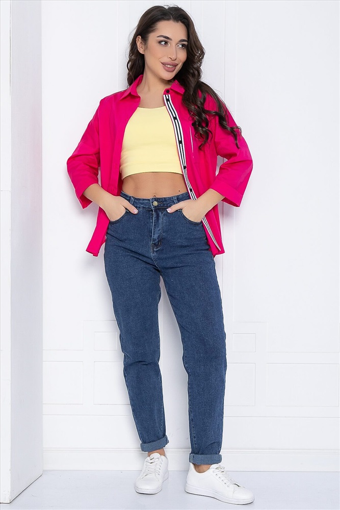Рубашка в цвете фуксии — это отличная альтернатива традиционным белым рубашкам. Спущенные рукава и асимметричная кокетка на спинке делают её современной и оригинальной. Аккуратный отворот по низу рукава придаёт изделию изящество, а воротник-стойка добавляет классический шарм. Эта рубашка идеально подходит как для повседневных, так и для более утончённых образов. Вы можете носить её на работу, на встречи с друзьями или на романтические свидания — в любом случае вы будете выглядеть стильно и чувствовать себя комфортно.