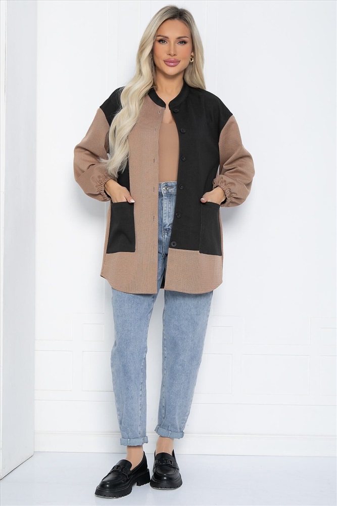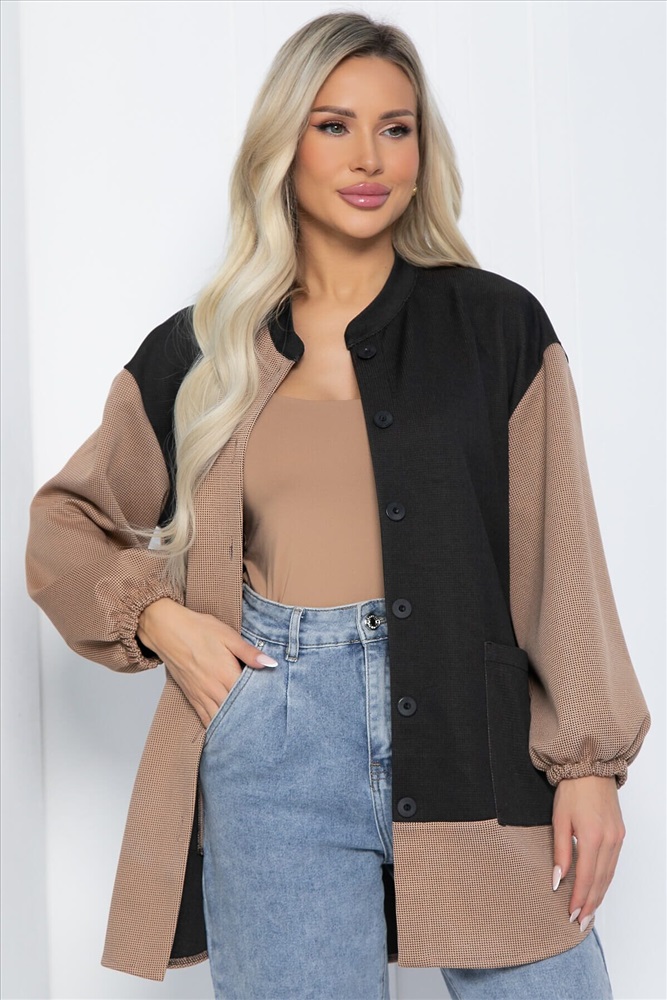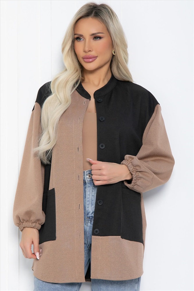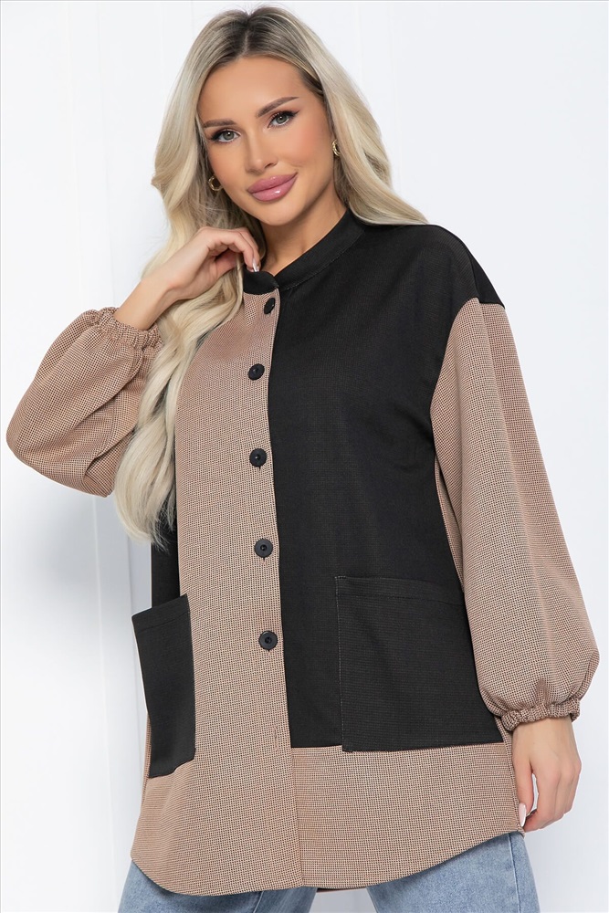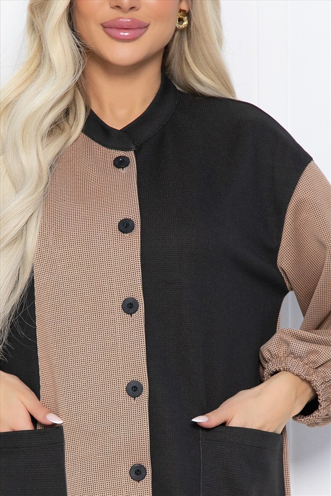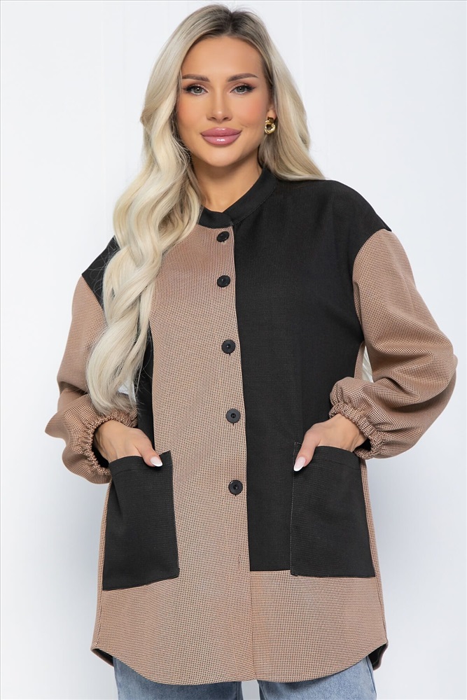 Удлиненная рубашка — это не только практичная, но и универсальная вещь, которая станет основой вашего гардероба. Модель оверсайз кроя выполнена из трикотажной ткани и отличается уникальным сочетанием цветов, что делает её подходящей для любой девушки. Воротник — стойка, плечи спущенные, рукав внизу на резинке. Спинка немного длиннее, что придаёт изделию стильный и современный вид.