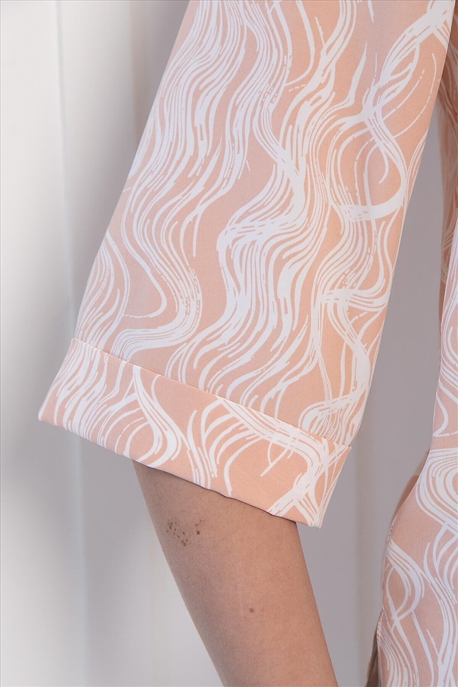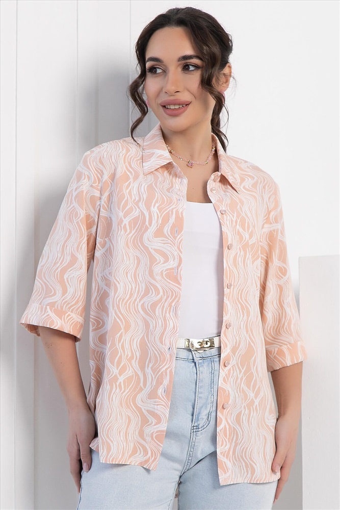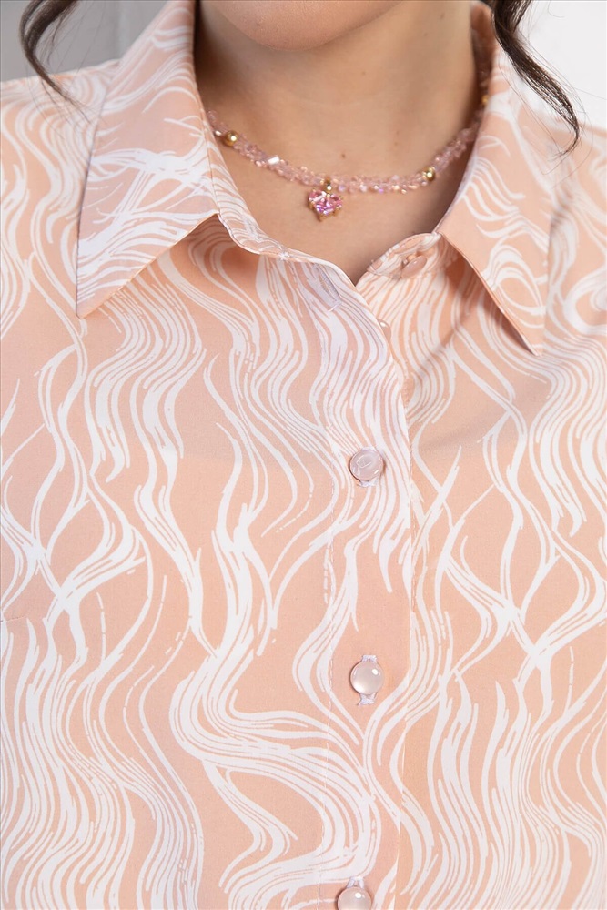 ID товара: 1093175 Состав: 80% Полиэстер, 20% Эластан Сезон: Весна/Лето Длина: Средняя Фасон: Свободный Рукав: Ниже локтя Вид застежки: Пуговицы Вырез горловины: Отложной воротничок Основная ткань: Полиэстер Стиль: классический Страна бренда: Россия Страна производства: Россия Артикул: Б12911-29М. Тип ткани: синтетический. Состав: 80% полиэстер, 20% эластан. Материал: блузочный. Цвет: персиковый. Принт: абстракция. Вид застежки: пуговицы. Силуэт: свободный. Карманы: отсутствуют. Подкладка: отсутствует. Декоративные элементы: отсутствуют. Длина по переду (ассиметричный крой): 46/ 66 см, 48/ 67 см, 50/ 69 см, 52/ 70 см. Длина по спинке от верхней точки плеча: 46/ 70 см, 48/ 71 см, 50/ 72 см, 52/ 73 см. Размер изделия на модели: 44 Рост модели: 167 см. Рубашка в персиковом оттенке и с абстрактным принтом — это то, что нужно для создания стильных образов! Она подходит как для офиса, так и для повседневных образов, поэтому станет незаменимой вещью в вашем гардеробе. Комбинируйте её с классическими брюками, джинсами или юбками, чтобы выглядеть безупречно в любой ситуации. Рукава втачные 3/4, с отворотом. По переду расположены пуговицы, а боковые разрезы обеспечивают свободу движений. Нагрудные вытачки подчёркивают фигуру, создавая изящный силуэт. Уход за изделием: ручная стирка до 30 градусов; нельзя отбеливать; отжим запрещён; гладить при t не более 110 С; гладить с изнанки. Внимание! Рекомендуем ориентироваться на размерную сетку и выбирать свой привычный размер, согласно размерной таблице. *Допуск отклонения длины при массовом производстве 1-3 см является нормой. Комментарии к товару
