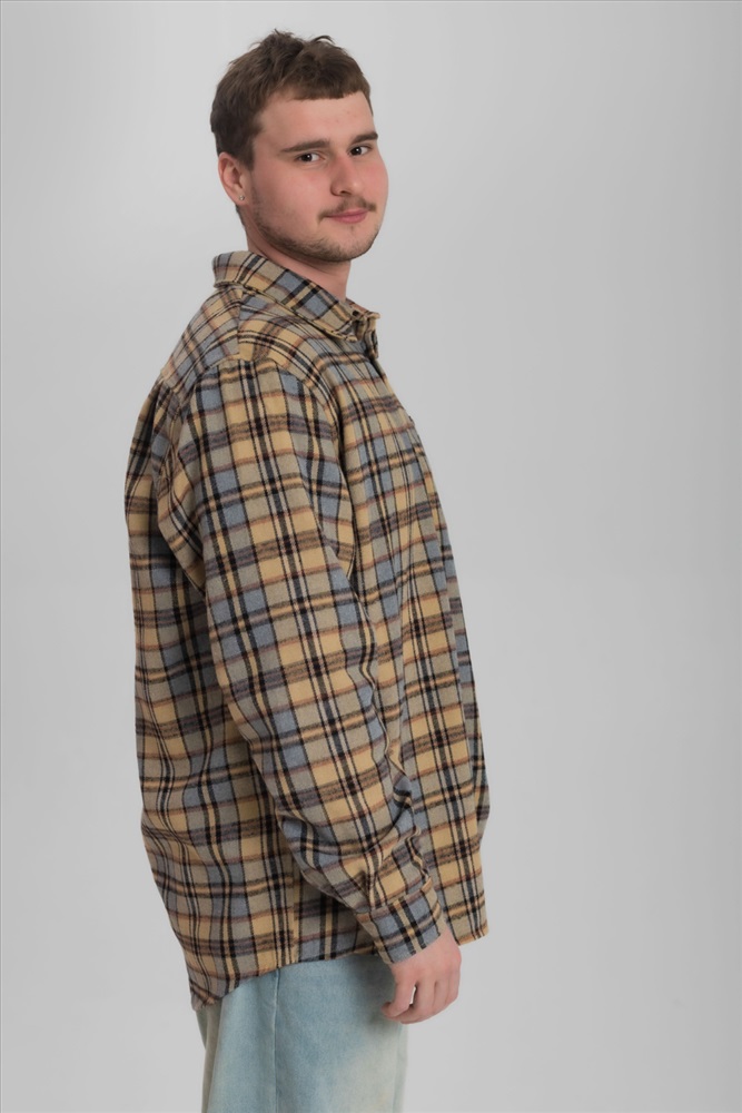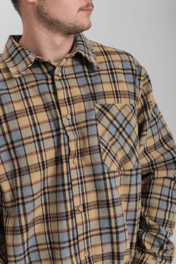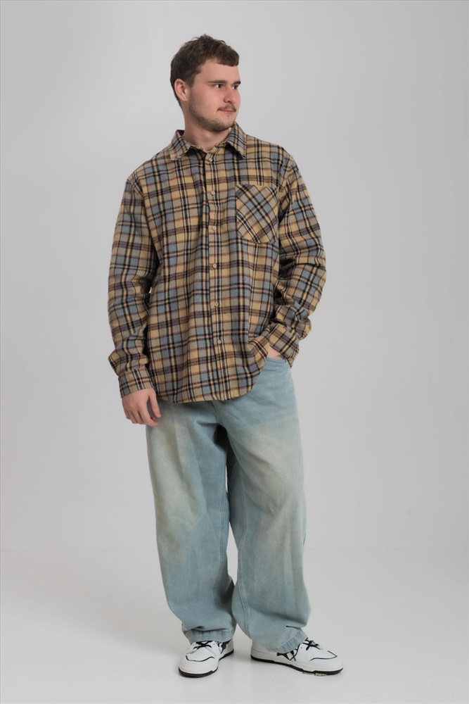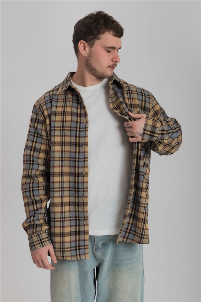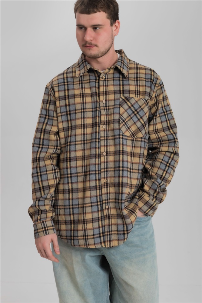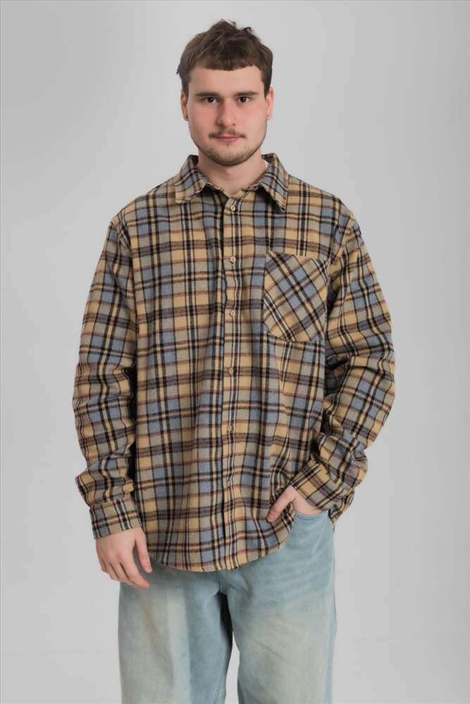 Цвет Номенклатуры: бежевый/серый Мужская рубашка с длинным рукавом выполненная из полотна "рубашечный шерон" и застёжкой на пуговицы — отличный выбор для вашего гардероба. Обеспечивает свободу движений, комфорт и аккуратный внешний вид. Воротник и нагрудный карман придают изделию стильный акцент.