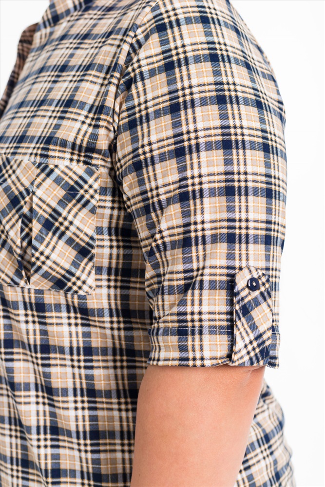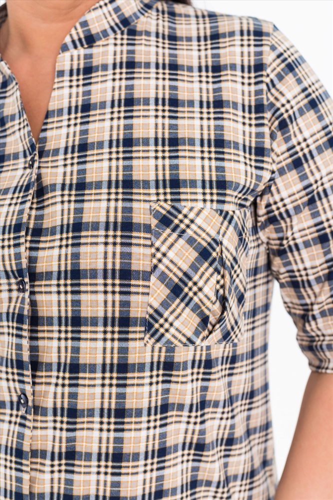 Застежка: Пуговицы С капюшоном: Нет С карманами: Да Сезон: Всесезонный Силуэт: Прямой Состав: Хлопок 100% Цвет Номенклатуры: коричневый Рубашка с рукавом длиной 3/4 и центральной застёжкой на пуговицы. Воротник-стойка, спереди накладной карман, на рукавах и снизу по бокам отделка паты. Комментарии к товару