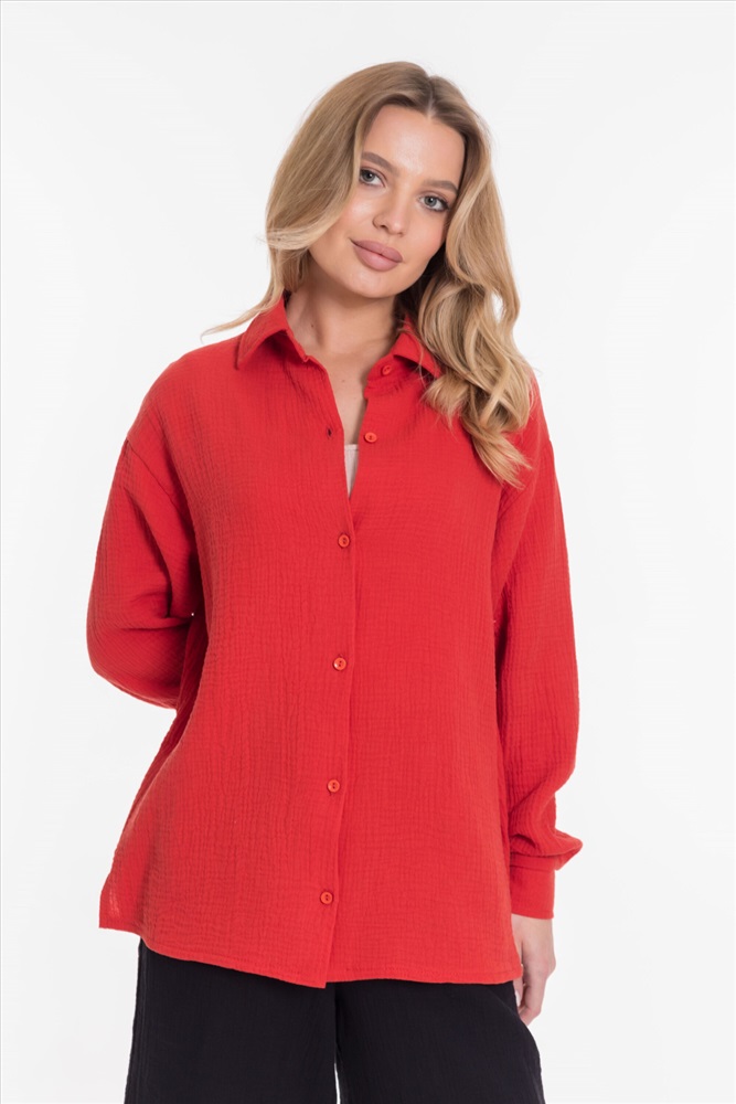 Женская рубашка — отличный выбор для повседневной носки. Она изготовлена из мягкого, лёгкого натурального материала — муслина. Рубашка имеет длинный спущенный рукав и застёжку на пуговицы. Воротник на отрезной стойке придаёт модели элегантность. В боковых швах есть небольшие разрезы, которые добавляют изюминку в дизайн. Такая однотонная рубашка идеально подойдёт для прогулок, отдыха или неформальных мероприятий. Она выполнена из качественного материала, который хорошо пропускает воздух и обеспечивает хорошую вентиляцию.