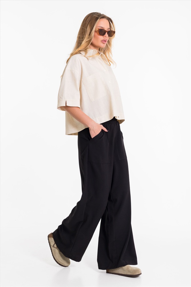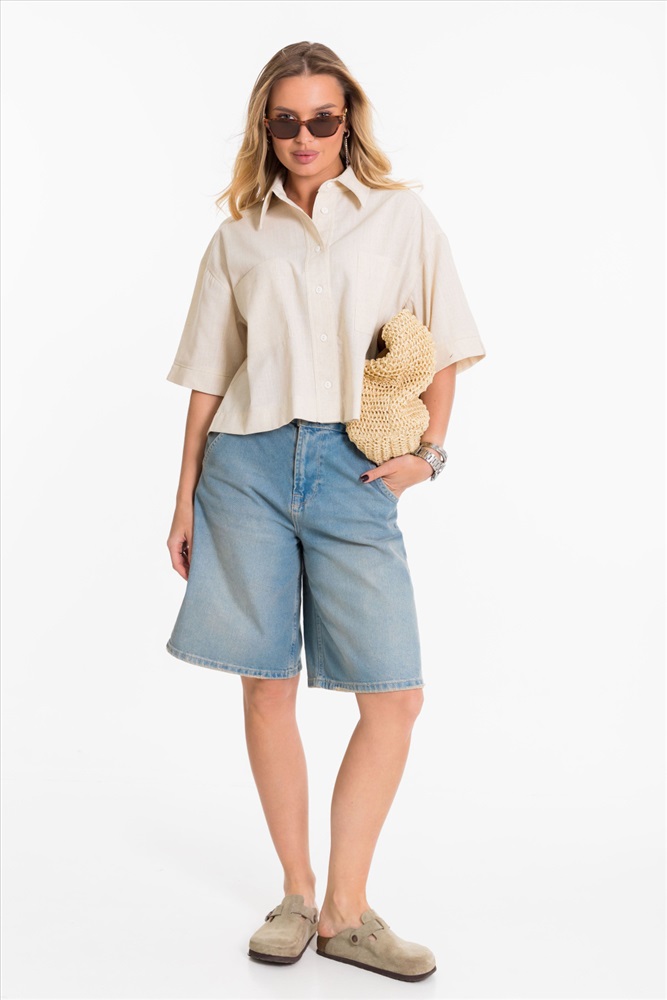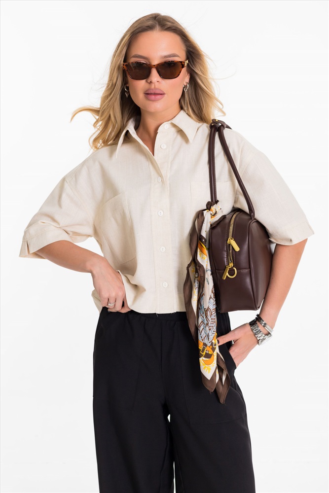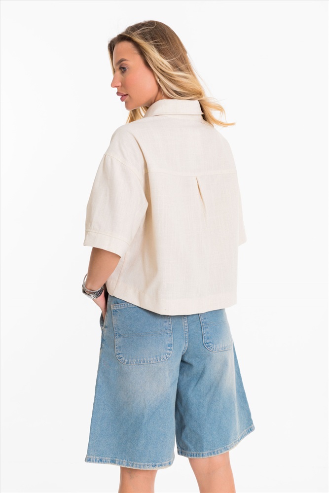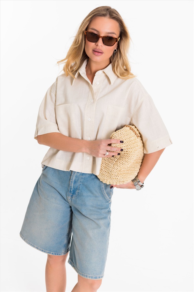 Застежка: Пуговицы С капюшоном: Нет С карманами: Да Сезон: Летний Силуэт: Свободный Состав: Вискоза 80% Лён 18% Спандекс 2% Цвет Номенклатуры: экрю Рубашка выполнена из однотонного натурального льна с вискозой. Рубашка короткая, свободного силуэта с застёжкой на пуговицы спереди. Воротник на отрезной стойке, спереди размещены накладные карманы, рукава короткие с притачной планкой. Комментарии к товару