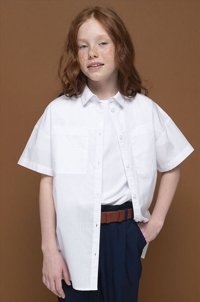Школьная рубашка оверсайз для девочки любой комплекции. Прочный и надежный материал отлично держит форму, легко гладится и мало мнётся. Эта рубашка в свободном прямом силуэте позволит быть собой и активничать не только на уроках, но и на переменах. Широкие накладные карманы не только стильный, но и функциональный элемент блузки. Подходит для любой фигуры. Минимализм и современный крой позволяют легко комбинировать её с классическим низом и джинсами. Можно носить навыпуск или заправлять.