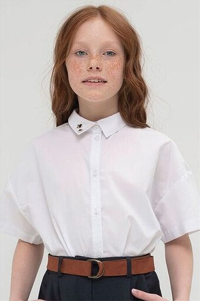 Школьная рубашка для девочки оверсайз. Ткань отлично держит форму, легко гладится и мало мнётся. Подойдёт для любой фигуры. Свободный прямой силуэт позволит быть собой и активничать не только на уроках, но и на переменах. Крутая деталь: съемные графичные значки пины! Их можно крепить не только на воротник, но и на джинсы, жакет или сумку. А еще ими интересно обменяться с подружкой. Минимализм и современный крой позволяют легко комбинировать её с брюками, платьями и юбками. Можно носить навыпуск или заправлять.