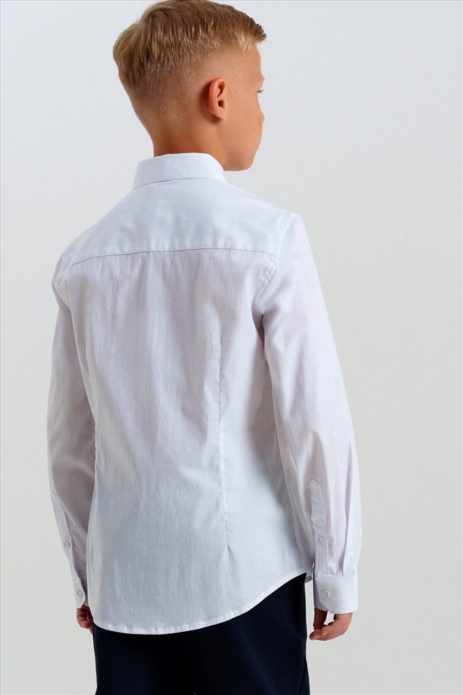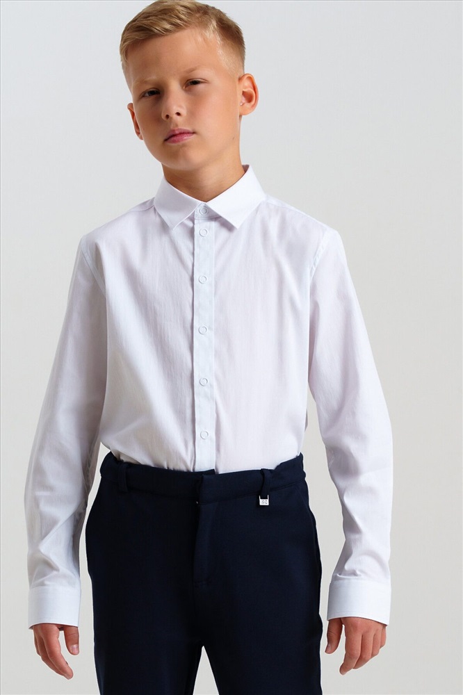Белая школьная рубашка с длинным рукавом - настоящая база гардероба для школьника! Классическая рубашка выполнена из ткани с высоким содержанием хлопка, что обеспечивает максимальный комфорт для мальчика подростка во время занятий. Рубашка свободного силуэта на кнопках станет отличным решением для школы, как на каждый день, так и для торжественных случаев. Сорочка может быть дополнена стильным галстуком или бабочкой для создания завершенного образа в школу. Строгая, лаконичная, элегантная рубашка создаст ребенку учебный настрой.