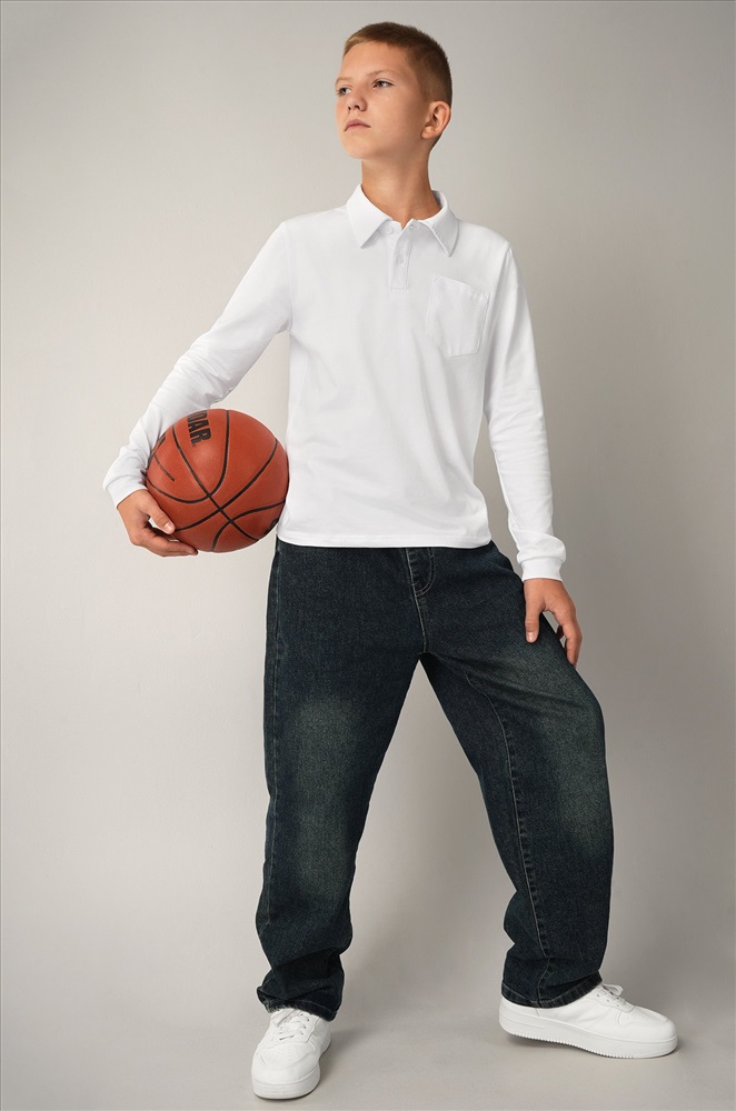 Базовая белая футболка-поло — отличное решение для школы, прогулок и повседневных образов.