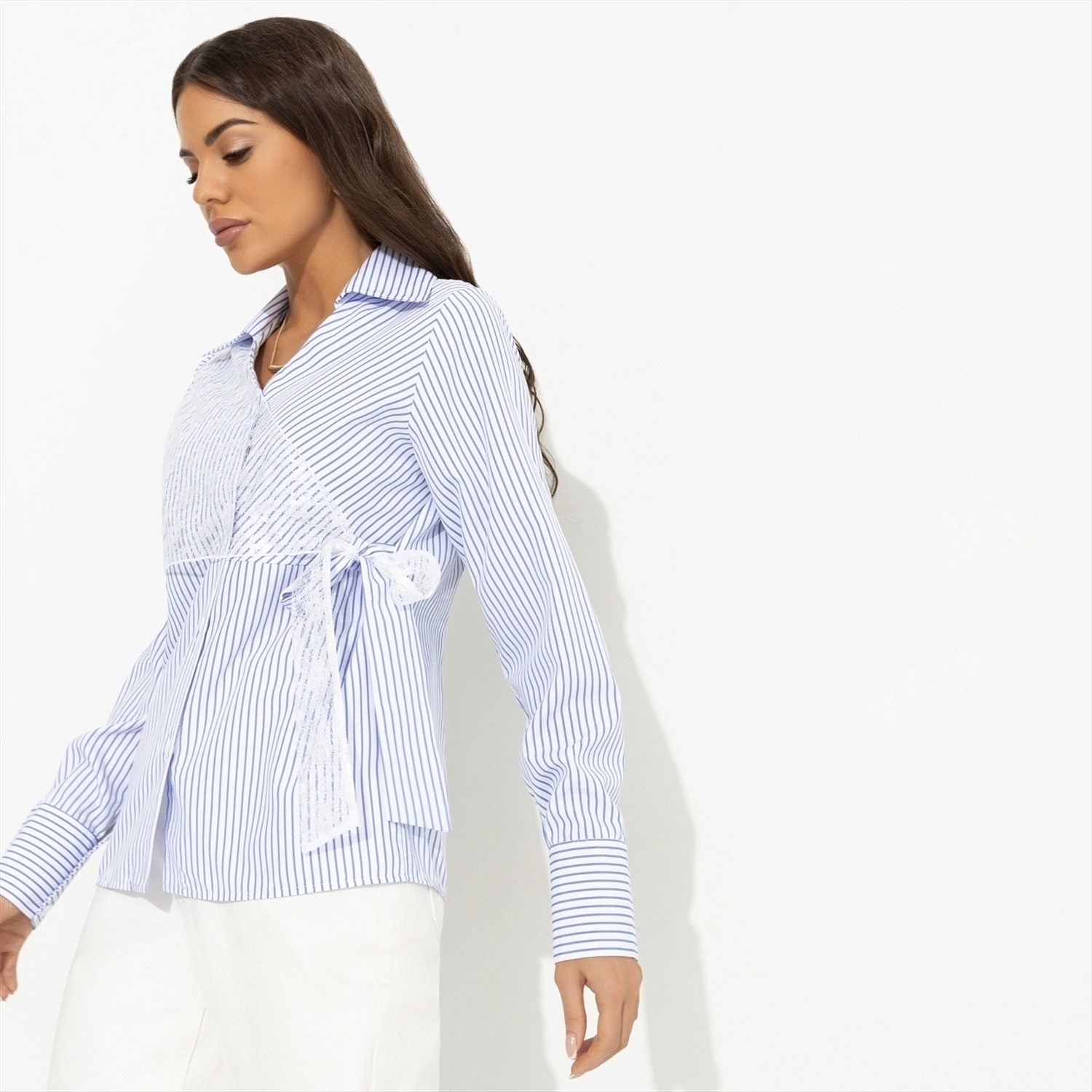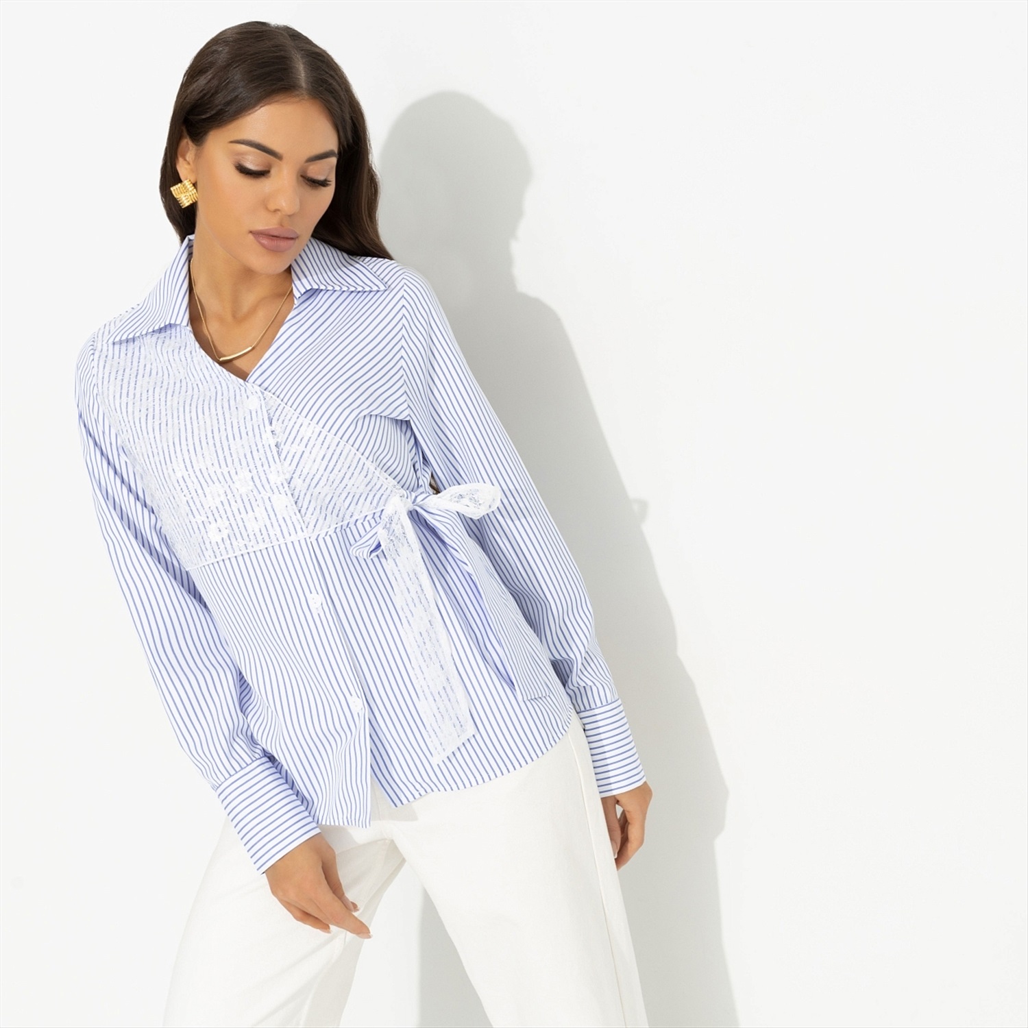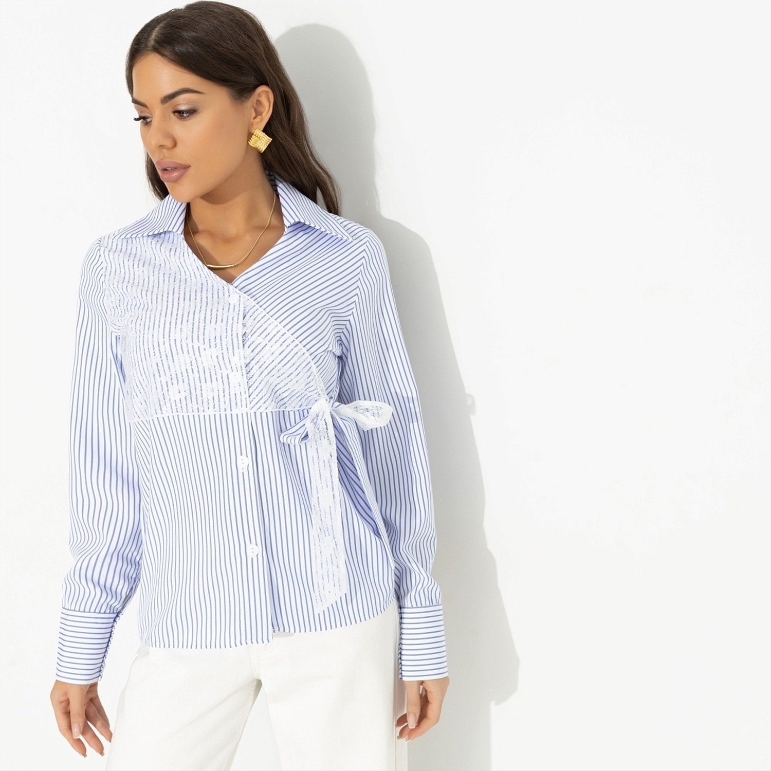 Быть заряженной на креативный лад значит с самого утра выстроить творческую стратегию. Матча-латте вместо привычного кофе, растяжка под классическую музыку вместо рутинных приседаний и рубашка с кружевом от CHARUTTI вместо базовой белой. Рубашка прямого силуэта. Дополнена акцентным вшитым кружевом на передней стороне изделия. Изделие застегивается на пуговицы. Хорошо смотрится в заправленном виде.