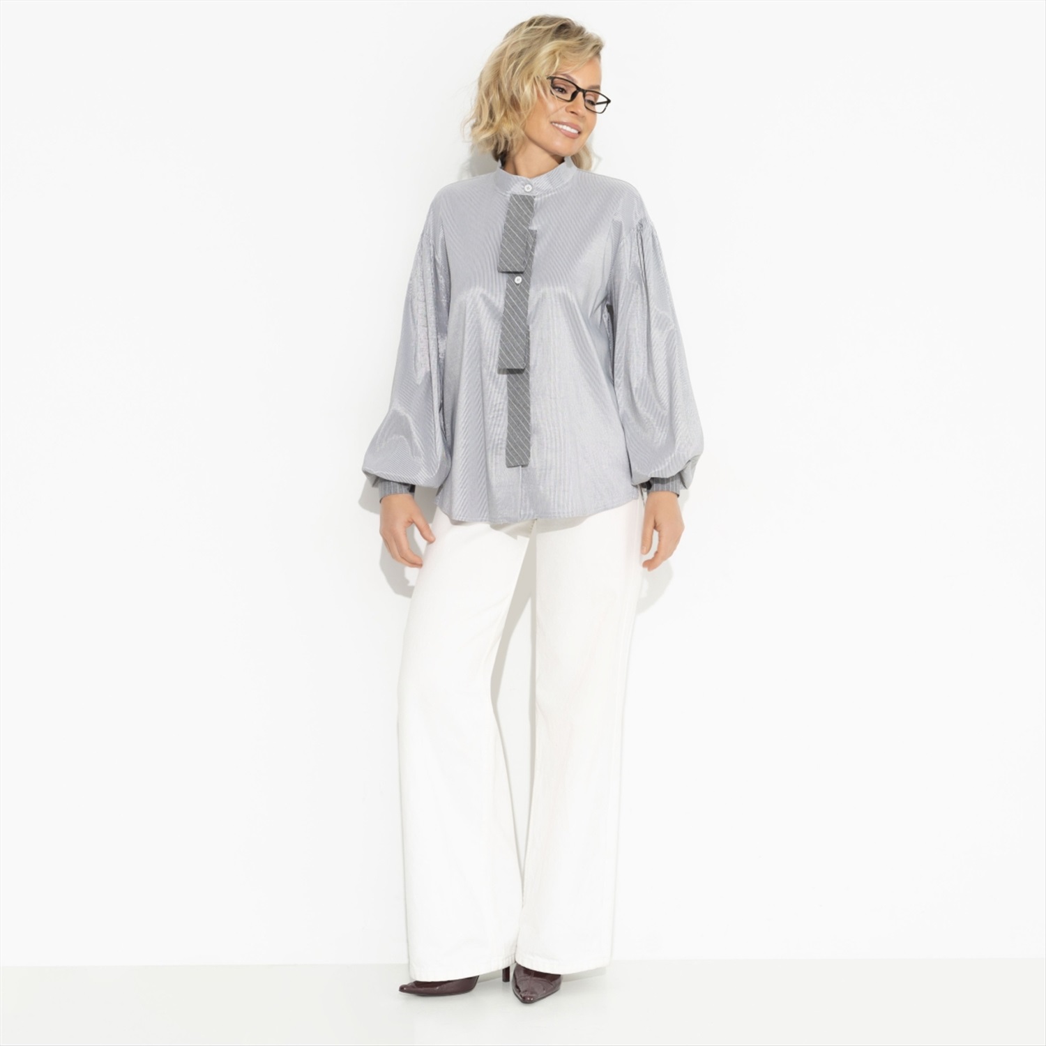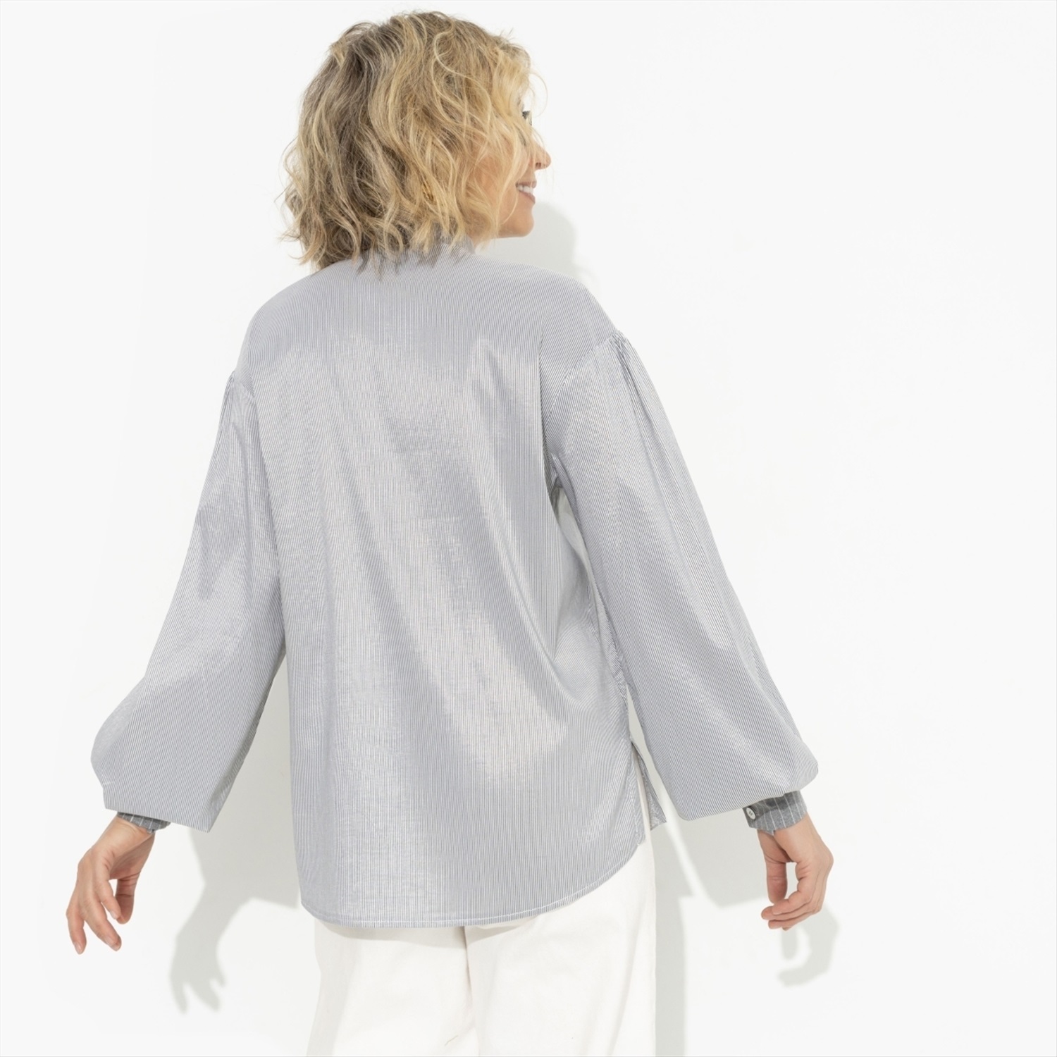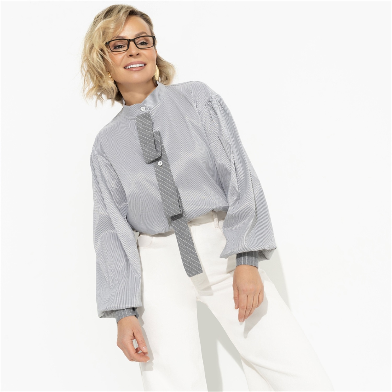 Состав: «Атлас стрейч» + «поплин» (85% п/э, 10% хлопок, 5% спандекс) Плотность ткани: Средняя Тип ткани: Текстиль Вид застежки: Пуговица/-ы Карманы: Нет Основной цвет ткани: Серый Отрезная талия: Нет Подклад: Нет Резинка по талии: Нет Рисунок/раппорт: Нет, все изделия идентичны Сезон: Демисезон Вашу маму и тут, и там показывают. Оказавшись на торжественном меропритиии в рубашке CHARUTTI, вы стали героиней выпуска о стильных людях. Выпуск вышел, когда вся ваша семья собралась у монитора. Так вышло случайно, конечно же! Рубашка свободного кроя. Воротник-стойка. Линия пуговиц дополнена объемным несъемным декором. Линия плеча спущена. Манжеты из контрастного материала. Изделие хорошо смотрится в заправленном виде и навыпуск. Рубашка с несъёмным драпирующимся галстуком от CHARUTTI — это не просто элемент гардероба, а настоящее произведение искусства, созданное для стильных и уверенных в себе женщин. Представьте, как вы, облачённая в эту белую женскую рубашку, становитесь центром внимания на любом торжественном мероприятии. Благодаря свободному крою и спущенной линии плеч, это изделие идеально подойдет для создания как классического, так и современного образа. Атлас стрейч и поплин — ткани, которые нежно обнимают тело, обеспечивая комфорт и изысканный вид. Воротник-стойка и объемный несъемный декор придают рубашке нотку утончённости и индивидуальности. Эта рубашка станет отличным выбором для тех, кто ищет женскую джинсовую рубашку или рубашку в клетку женскую, но хочет добавить в свой гардероб что-то особенное. Если вы хотите приобрести рубашки женские оптом, то эта модель станет отличным решением для вашего бизнеса. Оригинальный дизайн и универсальность фасона делают её незаменимой в любом сезоне. Контрастные манжеты добавляют акцент, который прекрасно сочетается с джинсами или классическими брюками. Рубашка женская оверсайз идеально подходит для повседневной носки, а также для создания элегантных образов. Она отлично смотрится как в заправленном виде, так и навыпуск, позволяя вам экспериментировать и демонстрировать свою индивидуальность. Если вы ищете рубашку женскую больших размеров или рубашку женскую тёплую, то эта модель идеально впишется в ваш ассортимент. Приобретая эту рубашку оптом, вы не только пополняете свой магазин стильными и качественными изделиями, но и дарите своим клиентам возможность почувствовать себя настоящими звездами. Эмоциональный отклик, который вызывают такие изделия, как эта рубашка, — это то, что заставляет людей возвращаться за покупками снова и снова. Пусть ваши клиенты ощутят ту самую магию, когда вся семья собирается у монитора, чтобы увидеть, как они становятся героями стиля. С этой рубашкой от CHARUTTI каждый ваш покупатель сможет ощутить себя в центре внимания, не зависимо от события — будь то деловая встреча или семейное торжество. Комментарии к товару