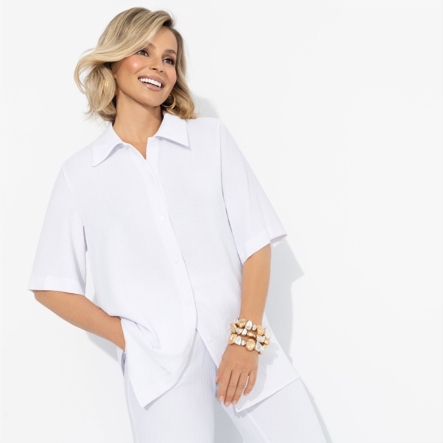 Ты словно Порше без тормозов, как поется в известной песне. Безумный карьерный взлет, большая компания друзей, путешествия и устроенная личная жизнь. Всё дело в белом! Самые важные из своих дней ты начинаешь с медитации и выбираешь блузу от ЧАРУТТИ. Она приносит удачу. Прямой силуэт. Удлиненное изделие. Хорошо смотрится в заправленном виде и навыпуск. Блуза застегивается на пуговицы. Комментарии к товару