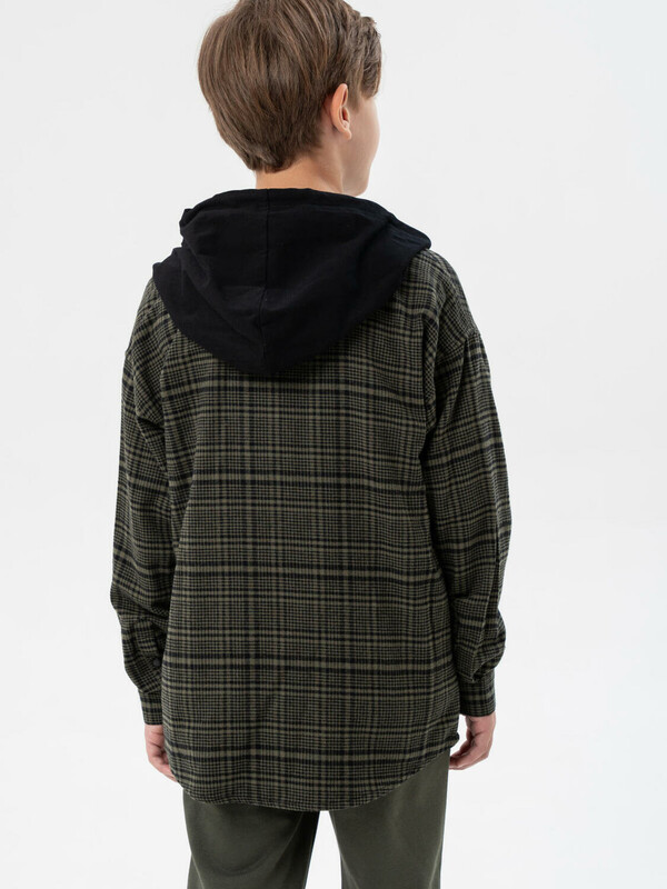 Фланелевая рубашка в клетку для мальчика подростка от PlayToday — стильная и практичная вещь, которая станет базой в гардеробе школьника. Натуральная фланель из 100% хлопка дарит мягкость, тепло и комфорт в носке, а капюшон добавляет современный спортивный акцент.