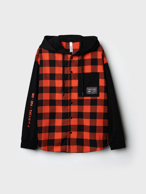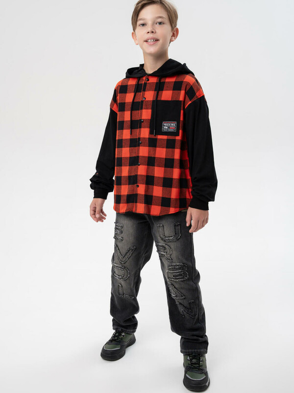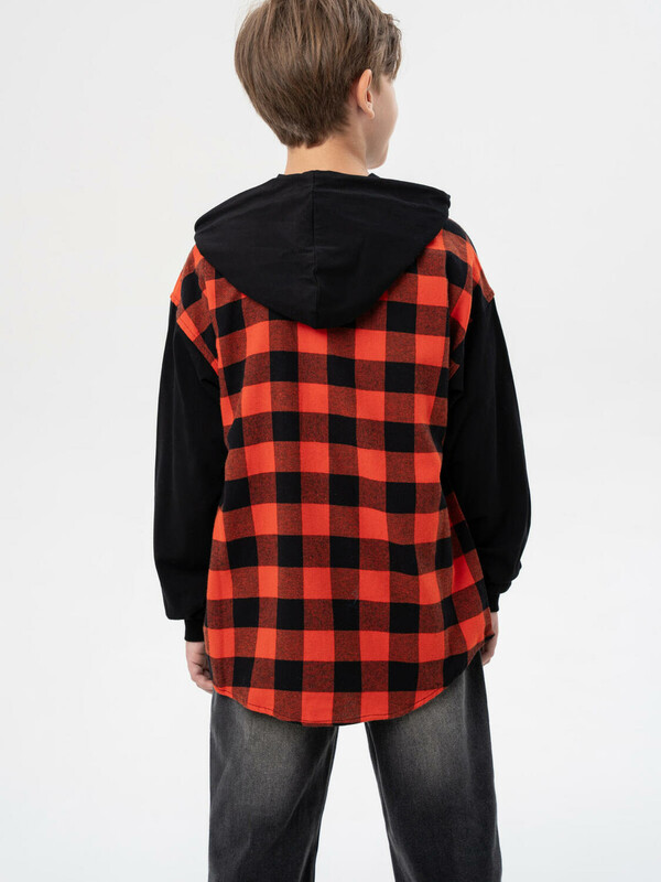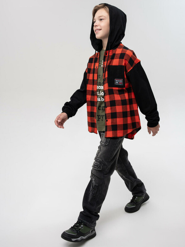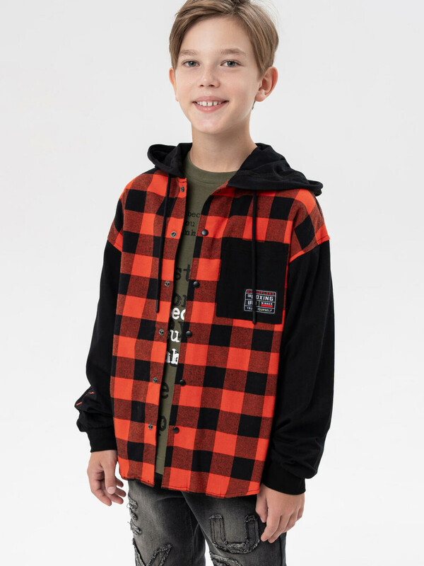 Рубашка текстильная с рукавами и капюшоном из трикотажа для мальчиков