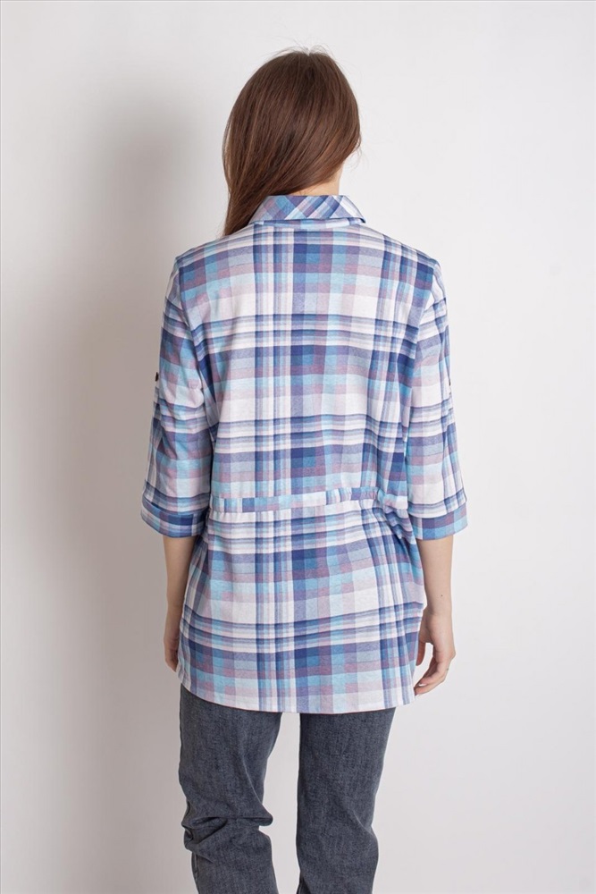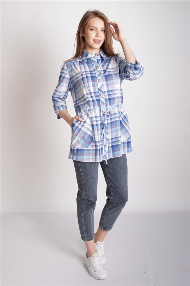 Самая модная вещь сезона, несомненно – рубашка в клетку. Модель очень яркая, легко вписывается в гардероб и оживляет образ. Рубашка прямого кроя, с рукавами чуть ниже локтя, с вшитым тонким ремешком на талии позволит визуально скорректировать фигуру. Легко сочетается с джинсами или легинсами, смотрится стильно и привлекательно.