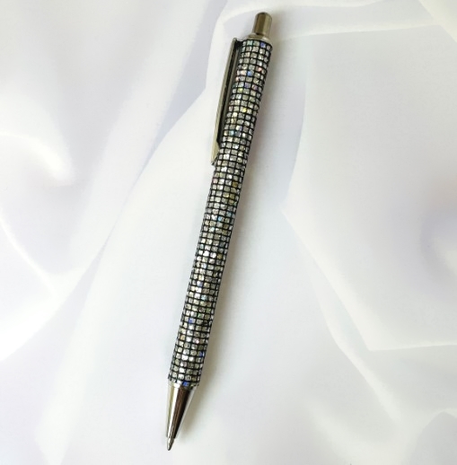 Ручка металлическая с отделкой из пайеток. Размер: 14 см.