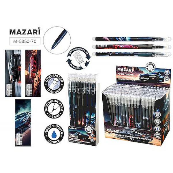 Наименование: Ручка гелевая "Пиши-стирай" "МАШИНЫ" синяя, игольчатый пиш.узел 0.5 мм M-5850-70 Mazari Упаковка: 1\ 12\ 72 Страна: Китай Производитель: Mazari min цена: 17,44 руб.