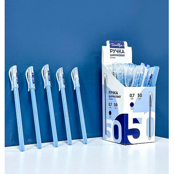 Ручка шариковая "Round" синяя с чернилами на масляной основе (производство Туркменистан) ТМ Глобус.