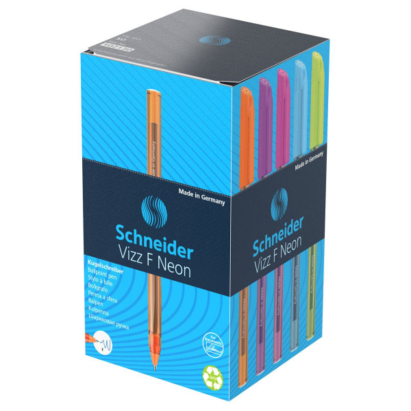 Наименование: Ручка шариковая 0.8мм "Vizz F Neon" синяя, прозрачный корпус неон ассорти 102130 Schneider Упаковка: 1\ 50\ 500 Страна: Германия Производитель: Schneider min цена: 39,68 руб.
