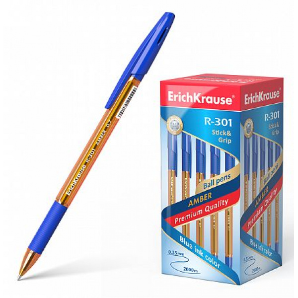 Наименование: Ручка шариковая R-301 GRIP Amber 0.7мм 39530 синяя ErichKrause