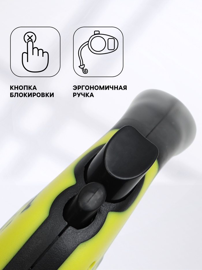 Рулетка "Зарница" оснащена стоп кнопкой, что позволяет легко и быстро остановить передвижение троса, если это необходимо. Это очень удобно, когда нужно контролировать перемещение питомца.