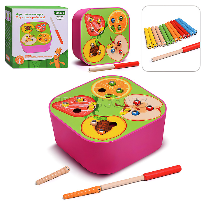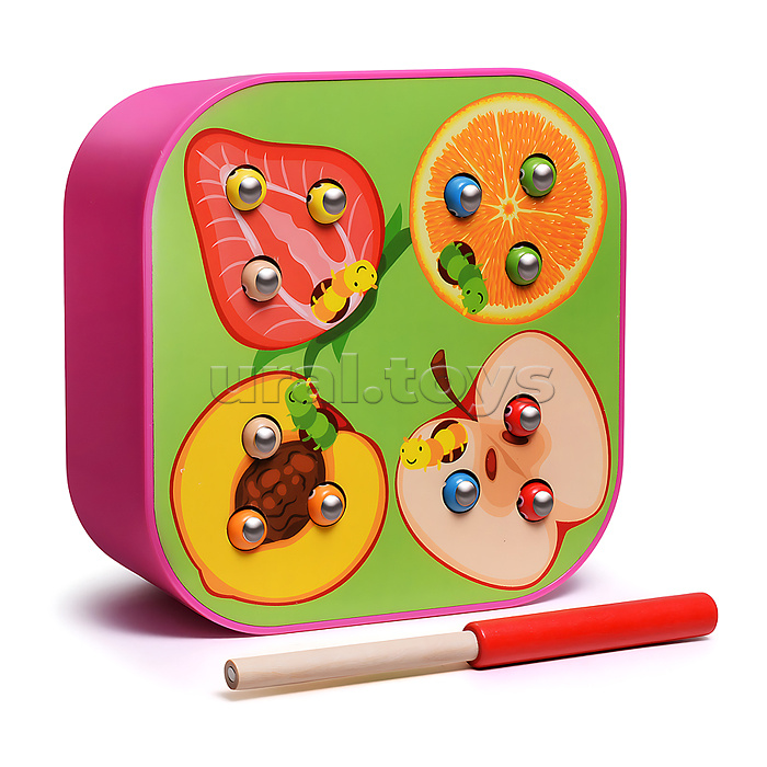 • Размеры игрушки: 15х15х6.5 см. • В комплекте: - 12 червячков с металлическими элементами. - палочка с магнитом. • Материалы: дерево, пластик. • Соответствует требованиям безопасности продукции. • Для детей от 3-х лет.