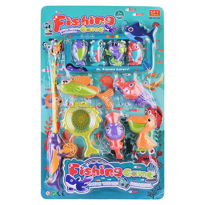 • В наборе: - удочка-спиннинг с крючком (35 см.) - сачок (12х8.5х2.5 см.) - 4 рыбки (5.5 см.) - 4 фигурки (11 см.) • Материал: пластик. • Соответствует требованиям безопасности продукции. • Для детей от 3-х лет.
