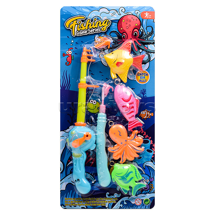 • В наборе: - удочка маленькая 19 см. - удочка большая 27 см. - 4 рыбки (6-8 см.) • Материал: пластик. • Соответствует требованиям безопасности продукции. • Для детей от 3-х лет.