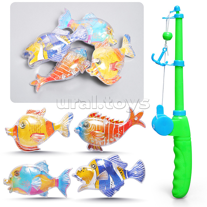 • В наборе: - удочка с магнитом 23 см. - рыбки с металлическим элементом 10 см. • Материал: пластик. • Соответствует требованиям безопасности продукции. • Для детей от 3-х лет.