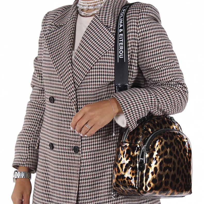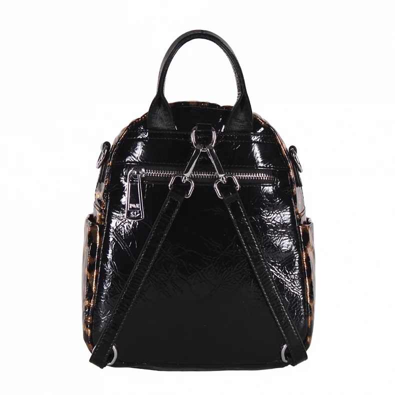 Длина (см): 22 Высота (см): 25 Вес (г): 650 Бренд: Polina&Eiterou Материал: Натуральная кожа Рюкзак-трансформер, выполнен из натуральной лаковой кожи. Декорирован принтом. Дополнен серебристой фурнитурой. Данная модель закрывается на молнию. Каркас полужесткий. Носится как рюкзак или как сумка. В комплекте имеются съемные рамени с регулировкой длины и ремень-стропа. А так же встроенная короткая ручка. Внутри: на боковых частях карман открытый и на молнии. Снаружи: основной отдел на молнии. На передней части карман на молнии. По бокам два открытых кармана. НА задней части карман на молнии. Комментарии к товару