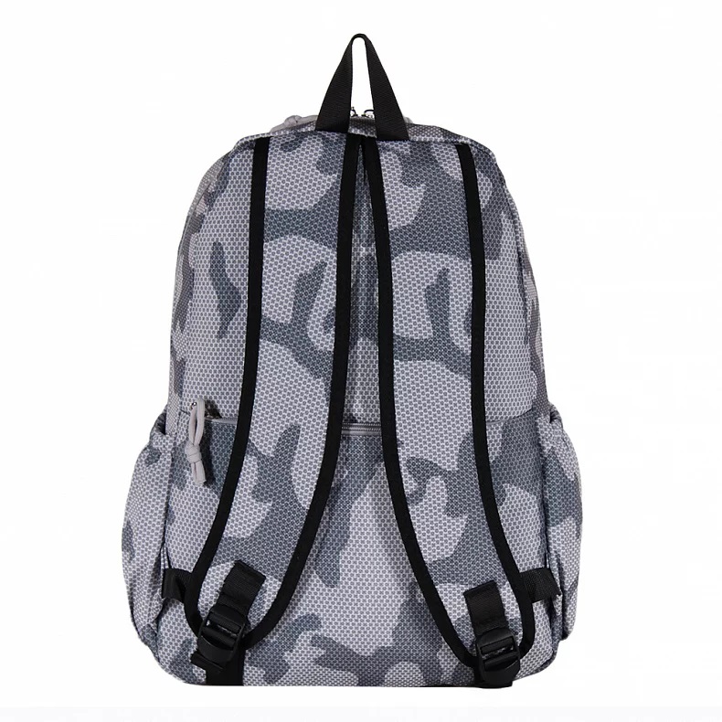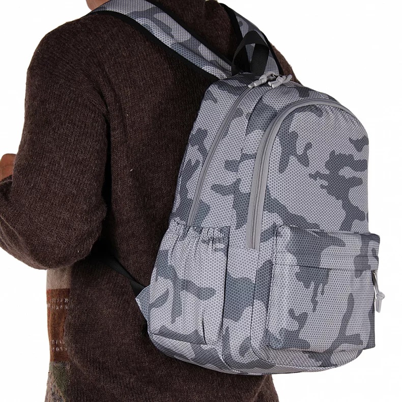 Снаружи два отдела на молнии. На передней части  карман на молнии. По бокам два открытых кармана.