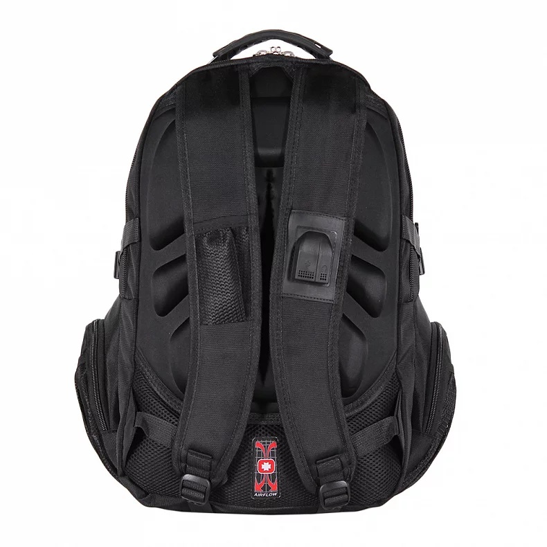 Модель имеет два основных отдела на молниях, на передней стенке три кармана на молнии, по бокам два кармашка из сетки для бутылочек с водой и два кармашка на молниях, так же по бокам имеются ремни-расширители. Мягкие лямки с рельефной поверхностью регулируются по длине, на лямках выход для наушников и USB разъем для подключения внешнего зарядного устройства, один открытый кармашек. На дне рюкзака отдел для чехла и чехол от дождя. Спинка рюкзака со специальной рельефной поверхностью, обеспечивающей удобное прилегание к спине и циркуляцию воздуха. Внутри подкладочный материал. Внутри кармана спереди имеется карман-органайзер для мелких предметов.