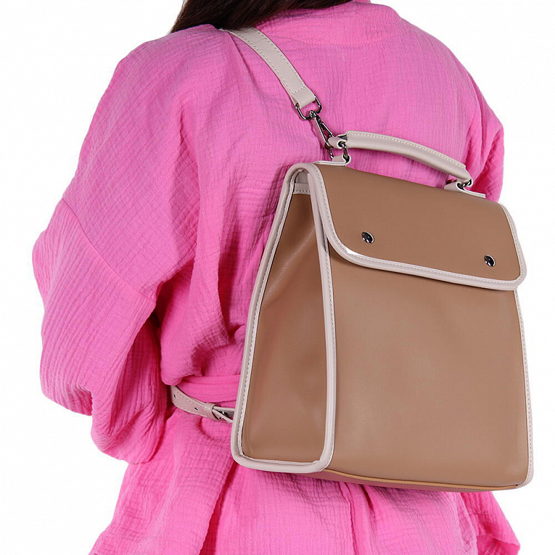 Рюкзак-трансформер выполнен из натуральной кожи. Дополнен серебристой фурнитурой. Данная модель закрывается на клапан. Носится как сумка или как рюкзак. Съемные ремни регулируются по длине.