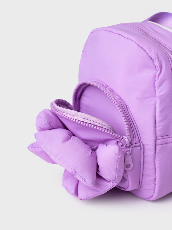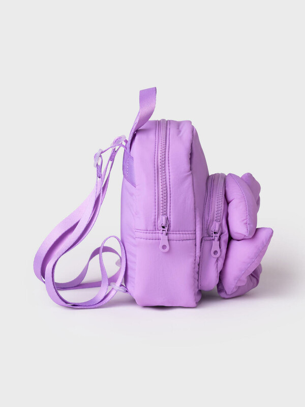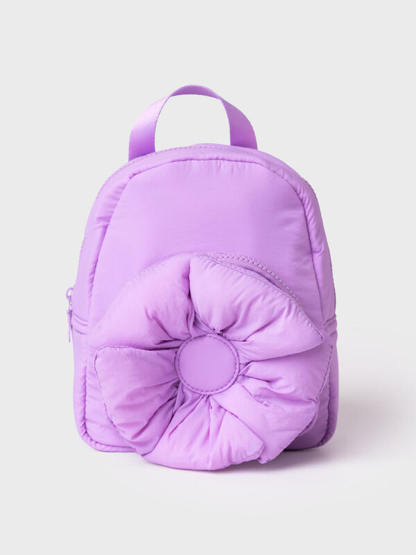Небольшой рюкзочок с карманом, который украшен объемным большим цветком. Внутри имеется два кармана, один из них на молнии. Лямки рюкзака регулируемые. Параметры рюкзака: высота - 20 см , ширина - 17,5см, глубина - 8 см