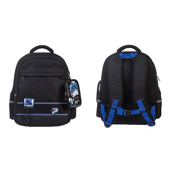 Легкий вместительный рюкзак для начальной школы (легко входит папка на молнии А4), мягкая вентилируемая спинка, 2 отделения (основное с плавающей перегородкой), большой передний карман на молнии, глубокие боковые карманы, уплотненная мягкая ручка и петля для подвеса, съемная нагрудная стяжка, светоотражающие элементы со всех сторон, уплотненное дно, вентилируемая мягкая спинка. Вес 600 г.Размер: 38х29х14,5см. Объем - 17л. Упаковка- индивидуальная в пакет.