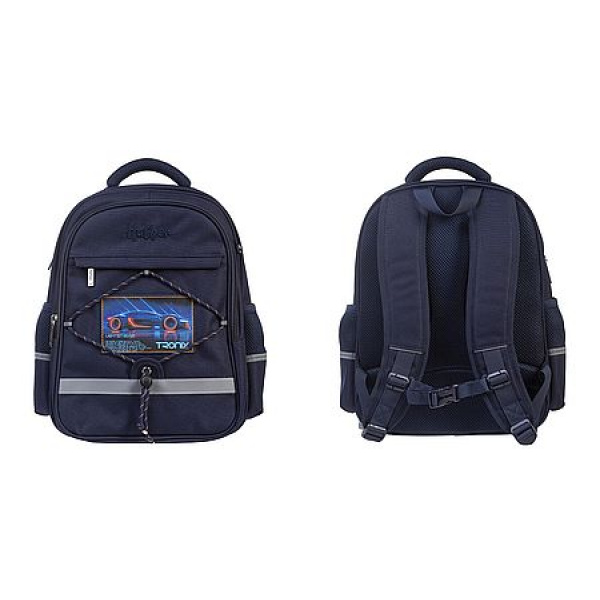 Легкий вместительный рюкзак для начальной школы (легко входит папка на молнии А4), мягкая вентилируемая спинка, 2 отделения (основное с плавающей перегородкой), большой передний карман на молнии, глубокие боковые карманы, уплотненная мягкая ручка и петля для подвеса, съемная нагрудная стяжка, светоотражающие элементы со всех сторон, уплотненное дно, вентилируемая мягкая спинка. Вес 600 г.Размер: 38х29х14,5см. Объем - 17л. Упаковка- индивидуальная в пакет.