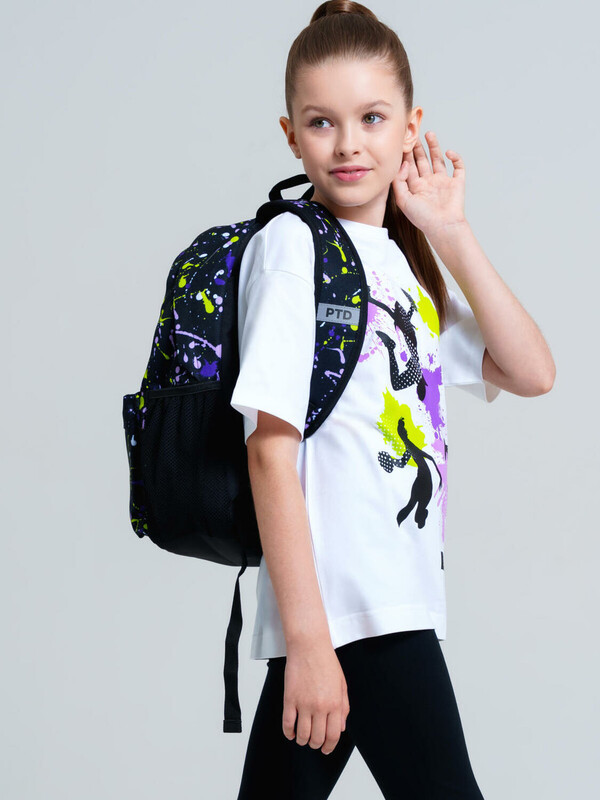 Школьный рюкзак для девочки подростка. Прямые широкие регулируемые лямки с мягкими вкладками и сетчатым покрытием для улучшения вентиляции. Основной отдел на молнии, карман на молнии, 2 боковых сетчатых кармана. Внутри: отдел для папок, карман на молнии, 2 кармана без замка, усиленная спинка и дно, светоотражающие элементы на переднем кармане и плечевых ремнях. Рюкзак в школу можно дополнить мешком для обуви и пеналом в том же дизайне.