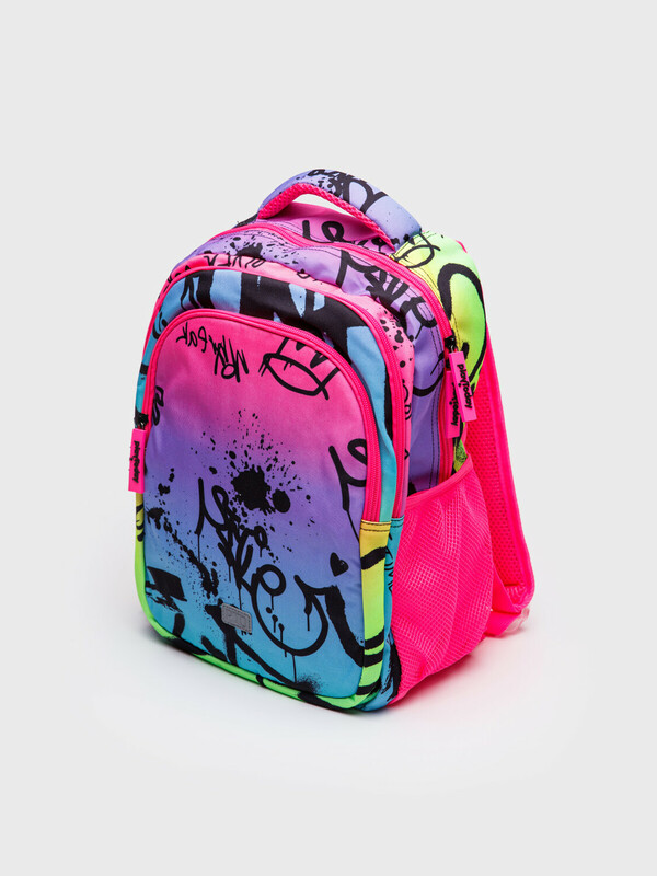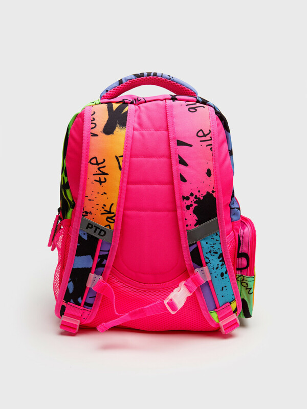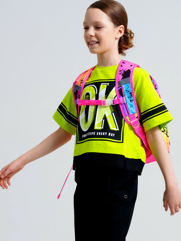 Школьный рюкзак для девочки подростка. Прямые широкие регулируемые лямки с мягкими вкладками и сетчатым покрытием для улучшения вентиляции, 3 основных отделения на молнии, 2 боковых кармана: сетчатый и на молнии. Внутри: 1 отсек: карман на молнии, открытые карманы для канцелярии. 2 отсек: без карманов, 3 отсек: карман для папок, карман на молнии, 2 кармана без замка, карабин для крепления пропуска/пенала/ключей, усиленная спинка, дно и верхняя ручка, спинка и обратная часть плечевых ремней - сетчатые, для улучшенной вентиляции, светоотражающие элементы на переднем кармане и плечевых ремнях. Рюкзак в школу можно дополнить мешком для обуви и пеналом в том же дизайне.