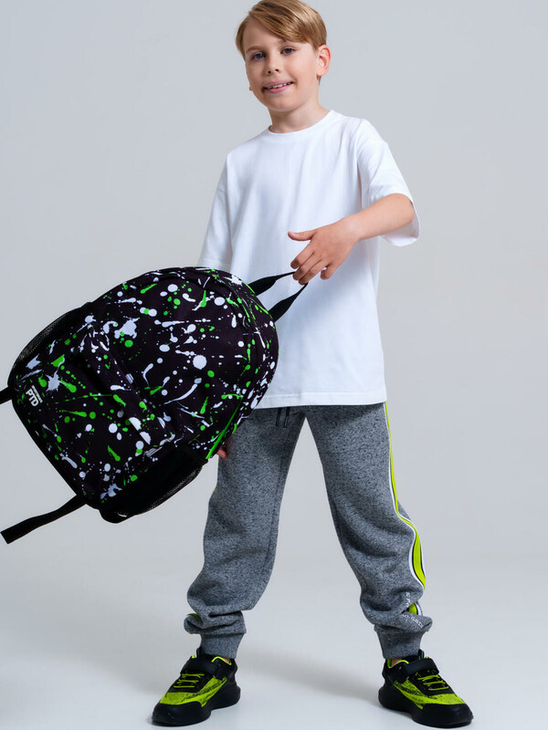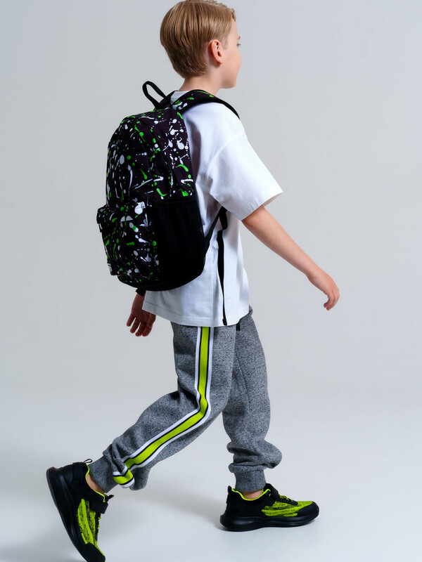 Школьный рюкзак для мальчика. Прямые широкие регулируемые лямки с мягкими вкладками и сетчатым покрытием для улучшения вентиляции. Основной отдел на молнии, карман на молнии, 2 боковых сетчатых кармана. Внутри: отдел для папок, карман на молнии, 2 кармана без замка, усиленная спинка и дно, светоотражающие элементы на переднем кармане и плечевых ремнях. Рюкзак в школу можно дополнить мешком для обуви и пеналом в том же дизайне.