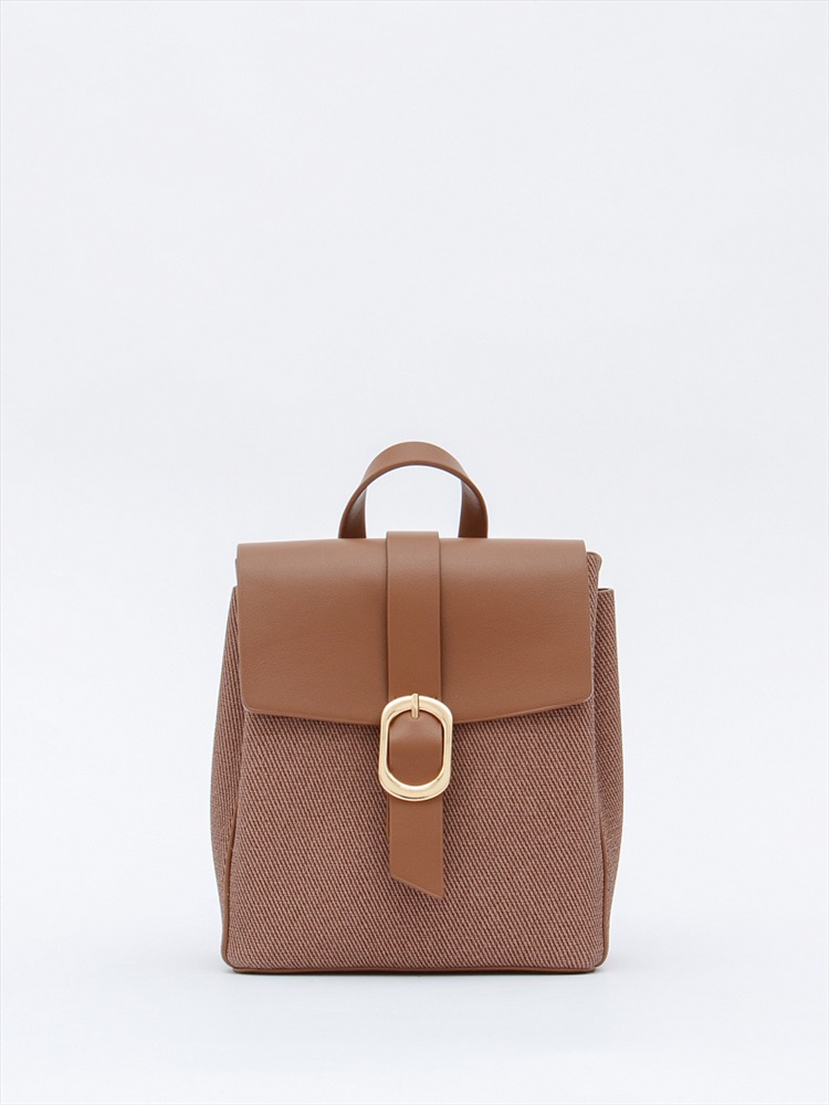 Материал: Экокожа Компактный рюкзак, выполнен из экокожи.  Декорирован деталями на фурнитуре. Дополнен золотистой фурнитурой. Данная модель закрывается на клапан. Каркас полужесткий, встроенные ремни регулируются по длине.