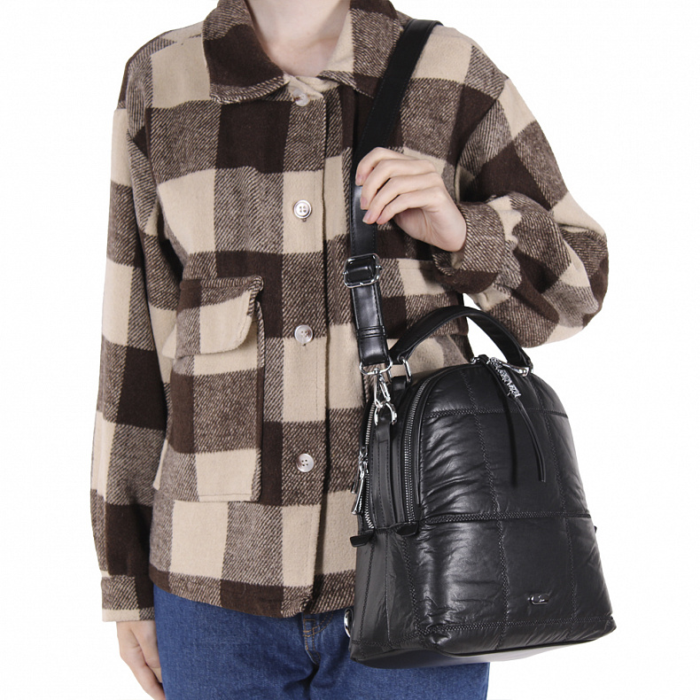 Материал: Экокожа Рюкзак-трансформер, выполнена из экокожи.  Дополнена серебристой фурнитурой. Данная модель закрывается на молнии. Каркас полужесткий. Носится как сумка или как рюкзак. Ремни съемные, так же есть встроенная ручка.
