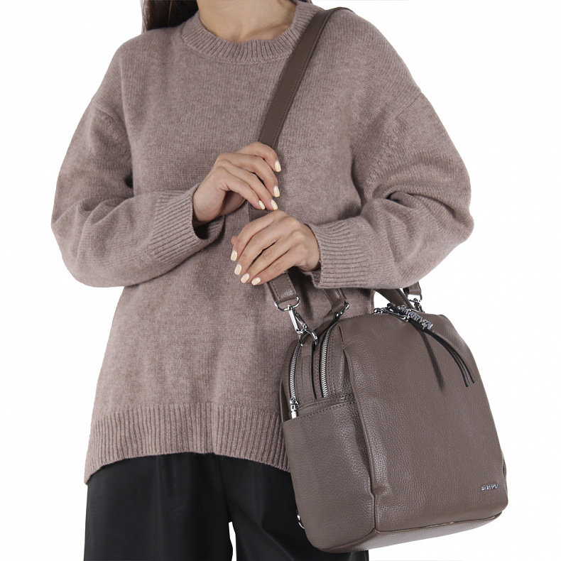 Материал: Экокожа Рюкзак-трансформер, выполнена из экокожи.  Дополнена серебристой фурнитурой. Данная модель закрывается на молнии. Каркас полужесткий. Носится как сумка или как рюкзак. Ремни съемные, так же есть встроенная ручка.