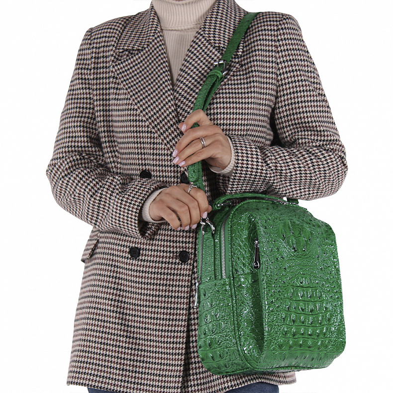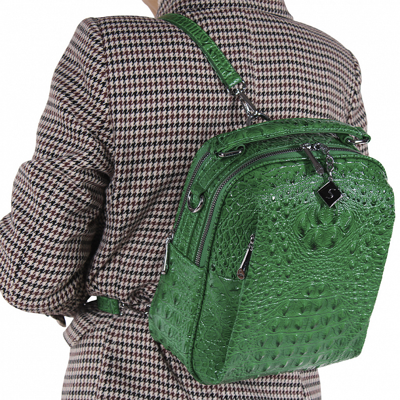 Длина (см): 20 Высота (см): 26 Вес (г): 750 Бренд: Velina Fabbiano-Safenta Материал: Экокожа Рюкзак-трансформер, выполнен из экокожи. Декорирован фактурой под крокодила. Дополнен серебристой фурнитурой. Данная модель закрывается на молнии, носится в руке или на плече. В комплекте есть съемные ремни с регулировкой длины. Каркас жесткий. Внутри: подкладочная ткань, на боковых стенках есть карман на молнии и открытый. Снаружи: два отдела на молниях. Комментарии к товару