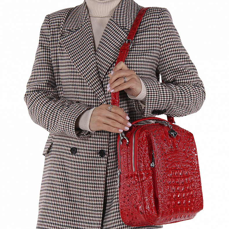 Длина (см): 20 Высота (см): 26 Вес (г): 750 Бренд: Velina Fabbiano-Safenta Материал: Экокожа Рюкзак-трансформер, выполнен из экокожи. Декорирован фактурой под крокодила. Дополнен серебристой фурнитурой. Данная модель закрывается на молнии, носится в руке или на плече. В комплекте есть съемные ремни с регулировкой длины. Каркас жесткий. Внутри: подкладочная ткань, на боковых стенках есть карман на молнии и открытый. Снаружи: два отдела на молниях. Комментарии к товару