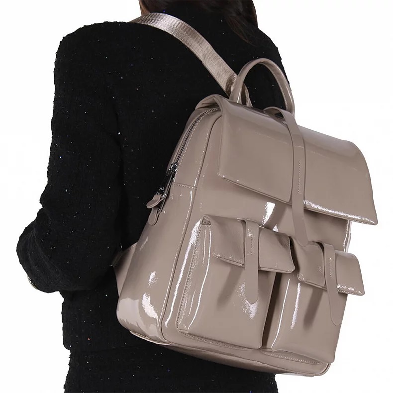 Длина (см): 26 Высота (см): 33 Вес (г): 1000 Бренд: Polina&Eiterou Материал: Натуральная кожа Классическая модель рюкзака, выполнен из натуральной лаковой кожи. Дополнен серебристой фурнитурой. Данная модель закрывается на клапан, носится на плече или в руке. Встроенные ремни регулируются по длине. Так же имеется ручка. Каркас полужесткий. Внутри: подкладочная ткань, на боковых стенках есть карман на молнии и открытый. Снаружи: основной отдел на молнии под клапаном. На задней части карман на молнии и передней два кармана под клапанами. Комментарии к товару