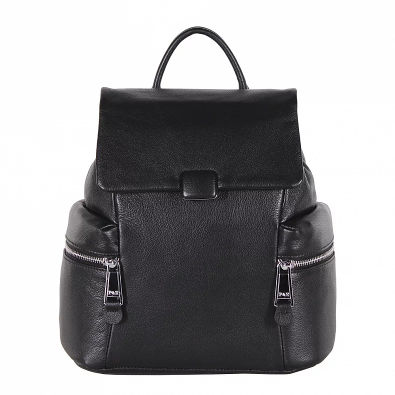 Снаружи закрывается на клапан и молнию. На задней части один карман на молнии. По бокам два кармана на молнии.