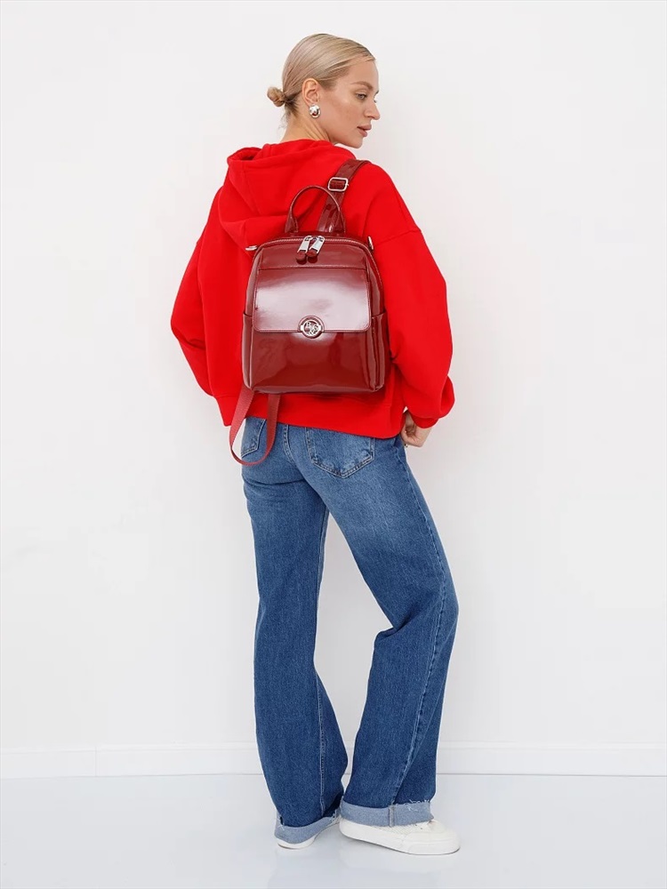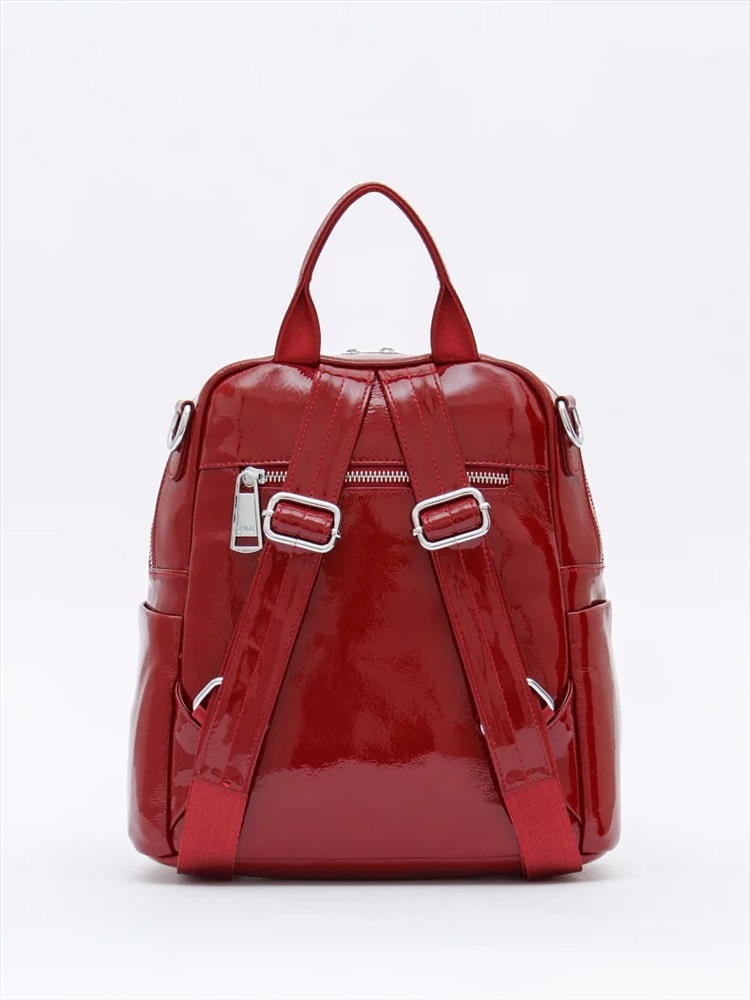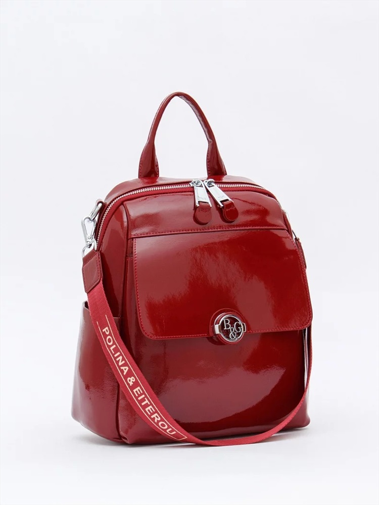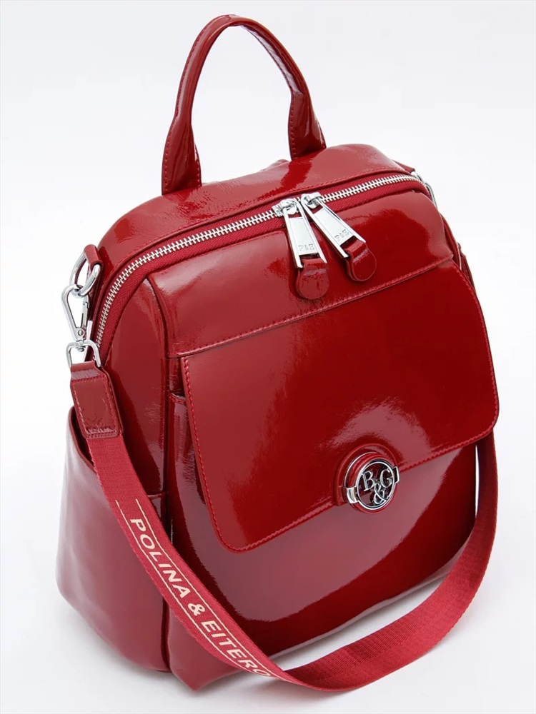 Длина (см): 26 Высота (см): 29 Вес (г): 950 Бренд: Polina&Eiterou Материал: Натуральная кожа Рюкзак-трансформер, выполнен из натуральной лаковой кожи. Дополнен серебристой фурнитурой. Данная модель закрывается на молнию. Каркас полужесткий. Рюкзак носится как сумка или как рюкзак. В комплекте имеется съемный ремень-стропа. Встроенные ремни регулируются по длине. Внутри: подкладочная ткань, на боковых частях карман на молнии и открытый. Снаружи: основной отдел закрывается на молнию. На задней части карман на молнии. На передней части карман под клапаном. Комментарии к товару