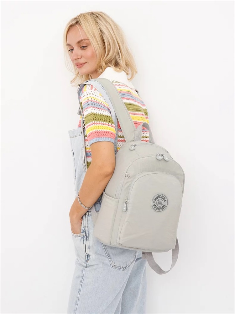 Удобный рюкзак, выполнен из текстиля. Дополнен серебристой фурнитурой. Данная модель закрывается на молнию. Каркас мягкий. Рюкзак носится в руке или на плече. Встроенные ремни регулируются по длине.