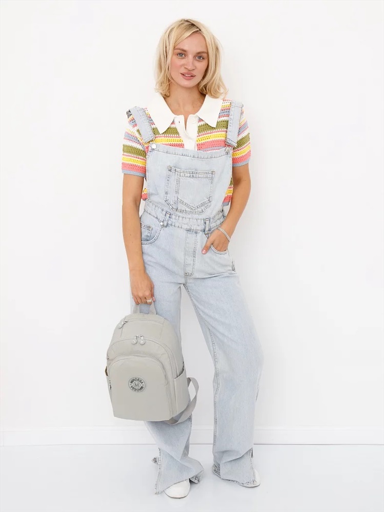 Снаружи: два отдела закрываются на молнии. На задней части и передней карманы на молниях. По бокам два открытых кармана.