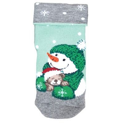 Носки детские, махровые. Носки с отворотом и эластичной полосой на линии сгиба. Отворот, пятка и нос из контрастного трикотажа. Носок украшен тканым принтом.
