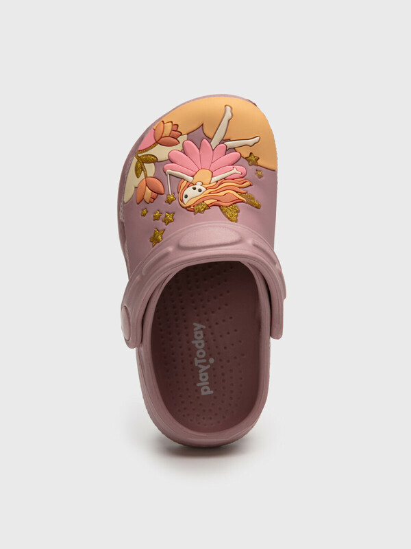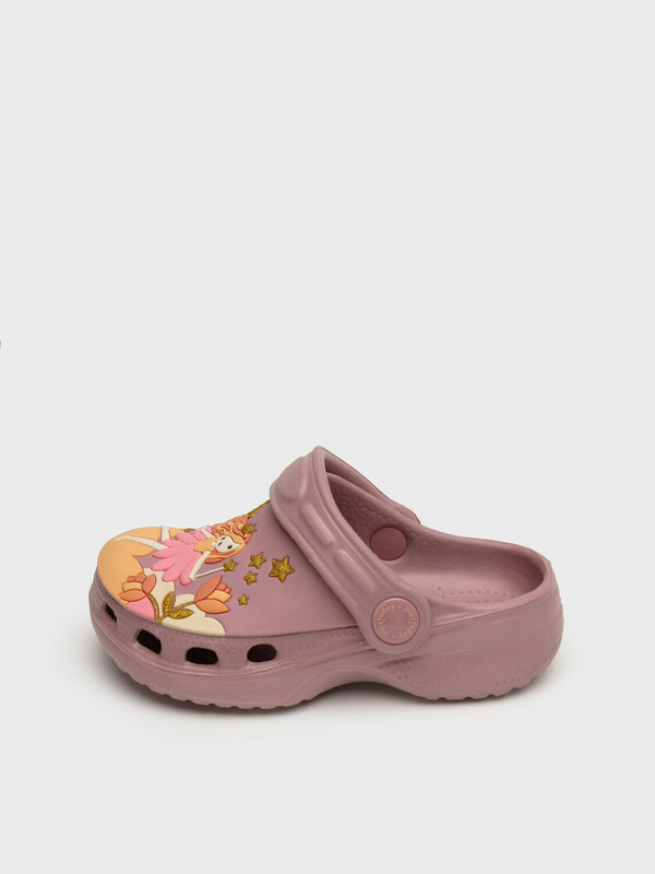 Сабо детские для девочки. Сабо из облегченного и прочного ЭВА. Материал хорошо моется. Объемный рисунок на правой и левой полупарах рассказывают нам целую историю из мира фей. Форма модели учитывает эргономику стопы. Модель имеет перекидной ремешок для лучшей фиксации обуви на ноге. Благодаря вентиляционным отверстиям сабо проветриваются, ноги ребенка дышат и не потеют.
